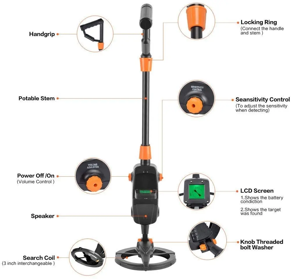 Search Coil – You can use the metal detector in the shallow water with waterproof search coil.