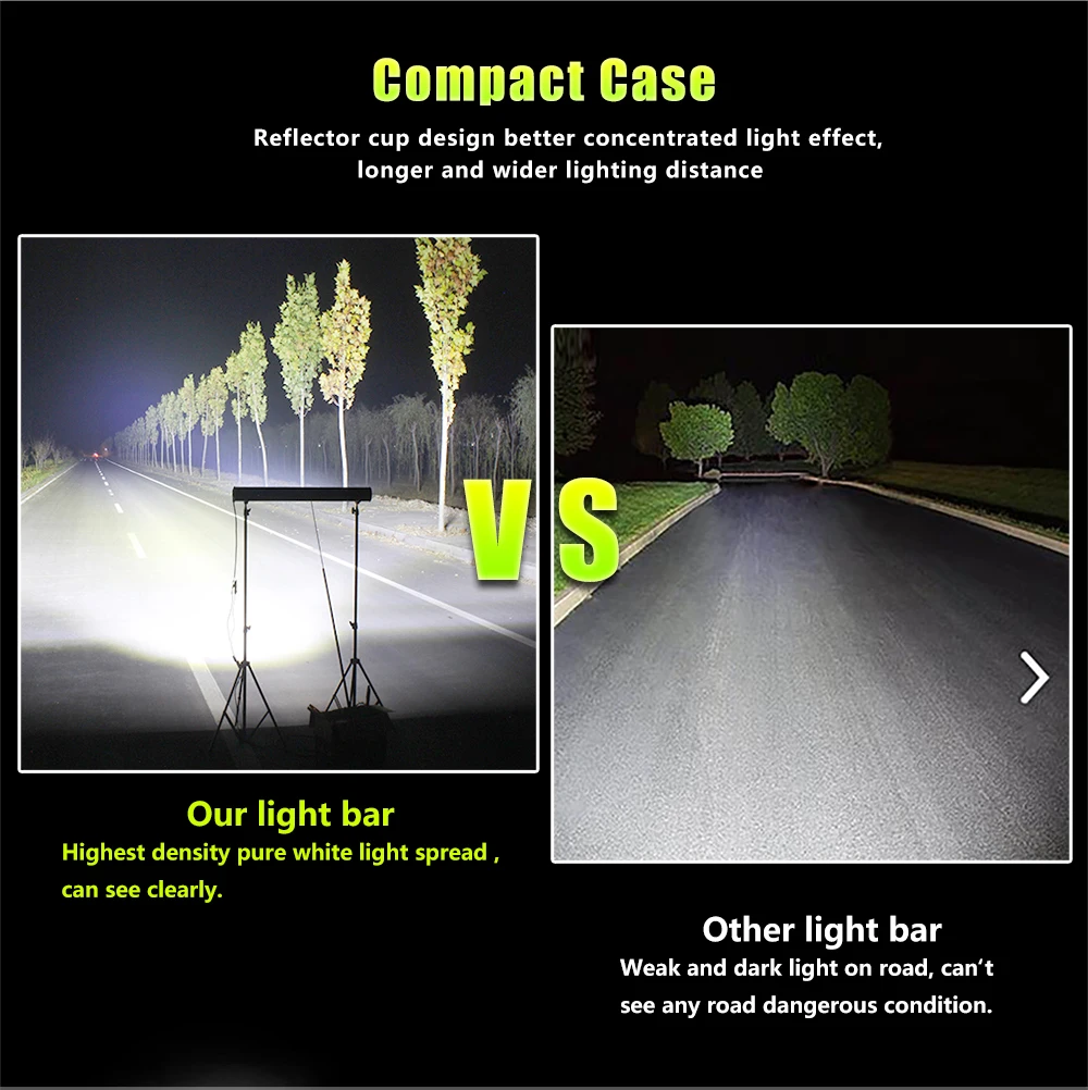 – Widespread uses: The light bar can be compatible with offroad, 4×4, Trucks, Motorcycles, SUV, ATV, Cars, Boats, etc. Back-up Light, Out Door Lighting, Off Road Lighting, Construction Lighting.