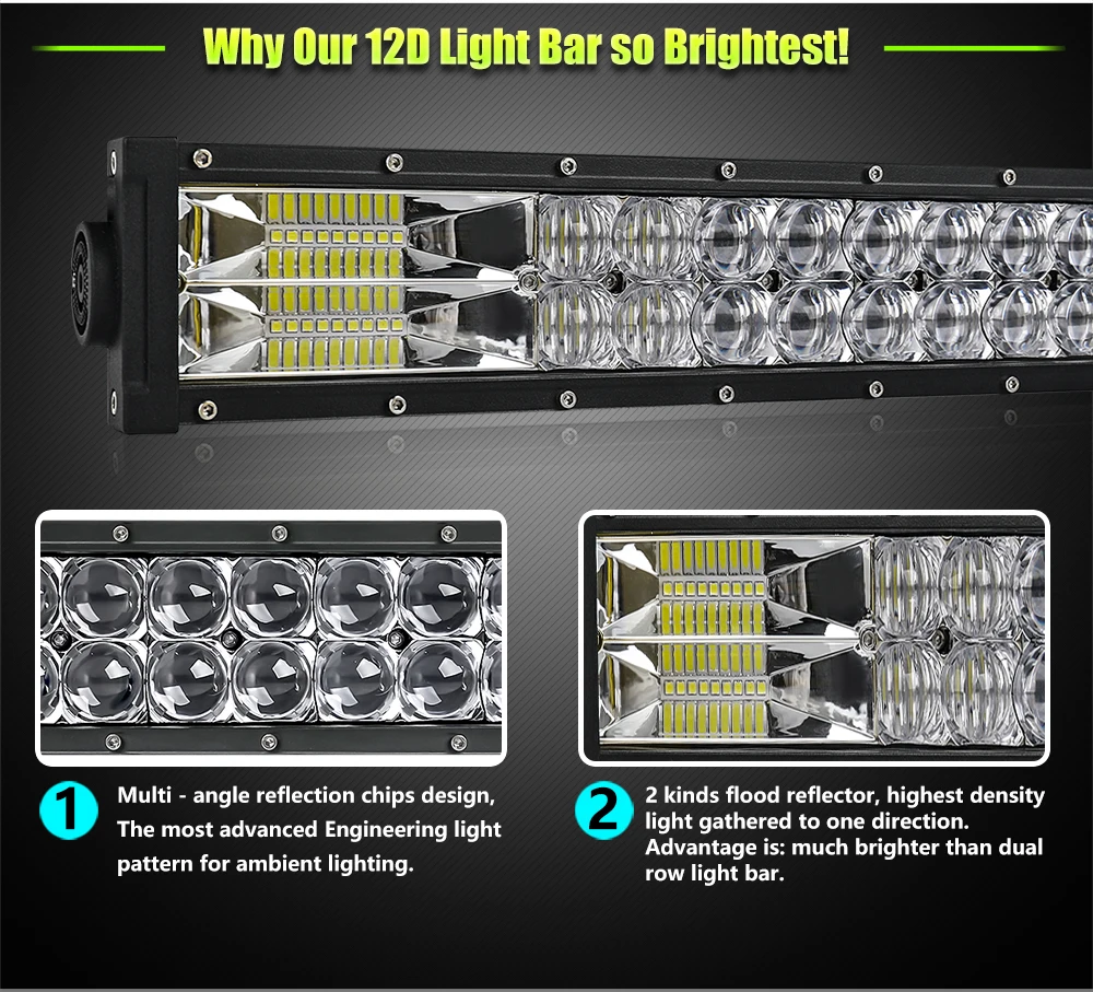 – Better heat dissipation: Quick cooling aluminum alloy heat sinks and high-quality heat conduction silicone gel can effectively extend the lifespan of the light bar to over 50,000 hours