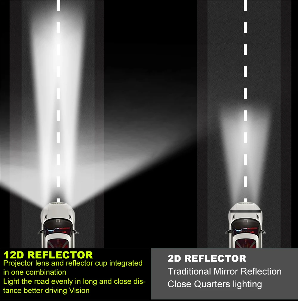 – Super bright & wide illumination range: Advanced LED chips give out bright and white ray for clear visibility. 12D combo reflector lamp cup leads to wider illumination range, allowing you to see the left and right clearly.