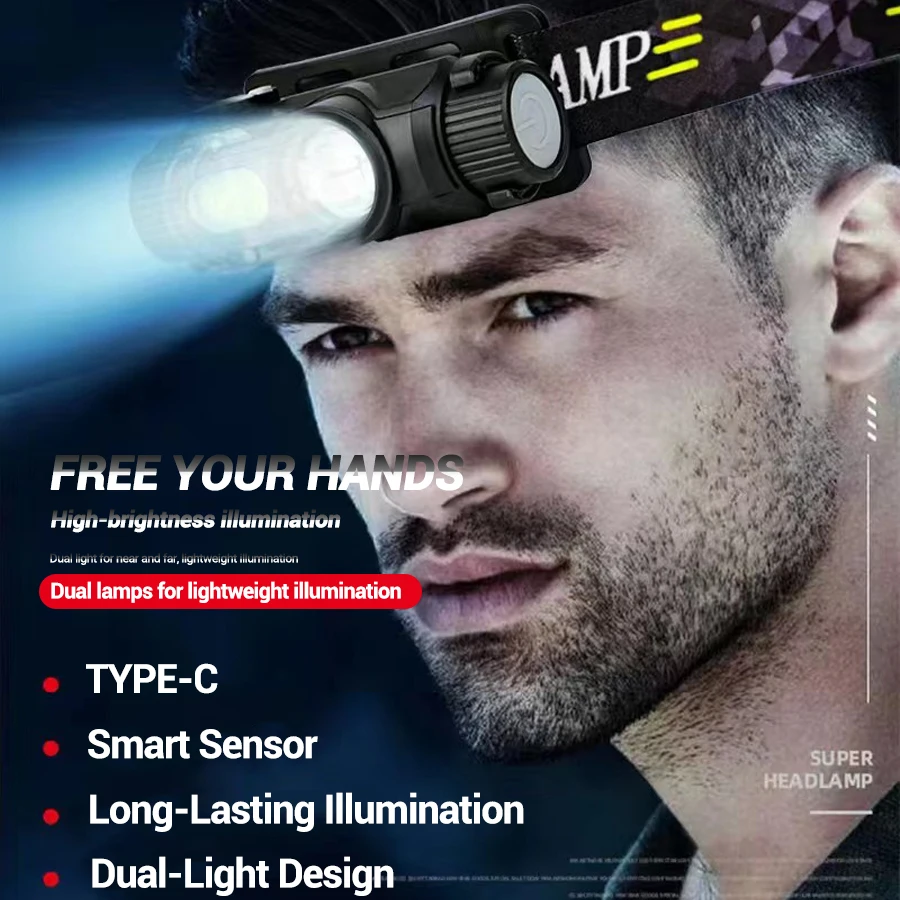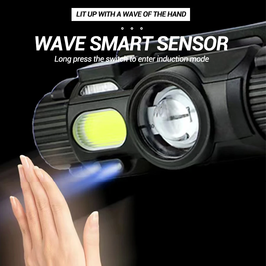 COB LED Sensor Headlamp Rechargeable Head Flashlight with Built-in Battery Head Torch Camping Search Light for Fishing Lantern