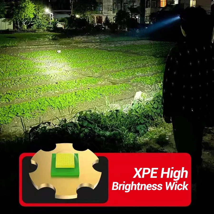Lighting distance: XPE: 50 meters, COB: 50㎡