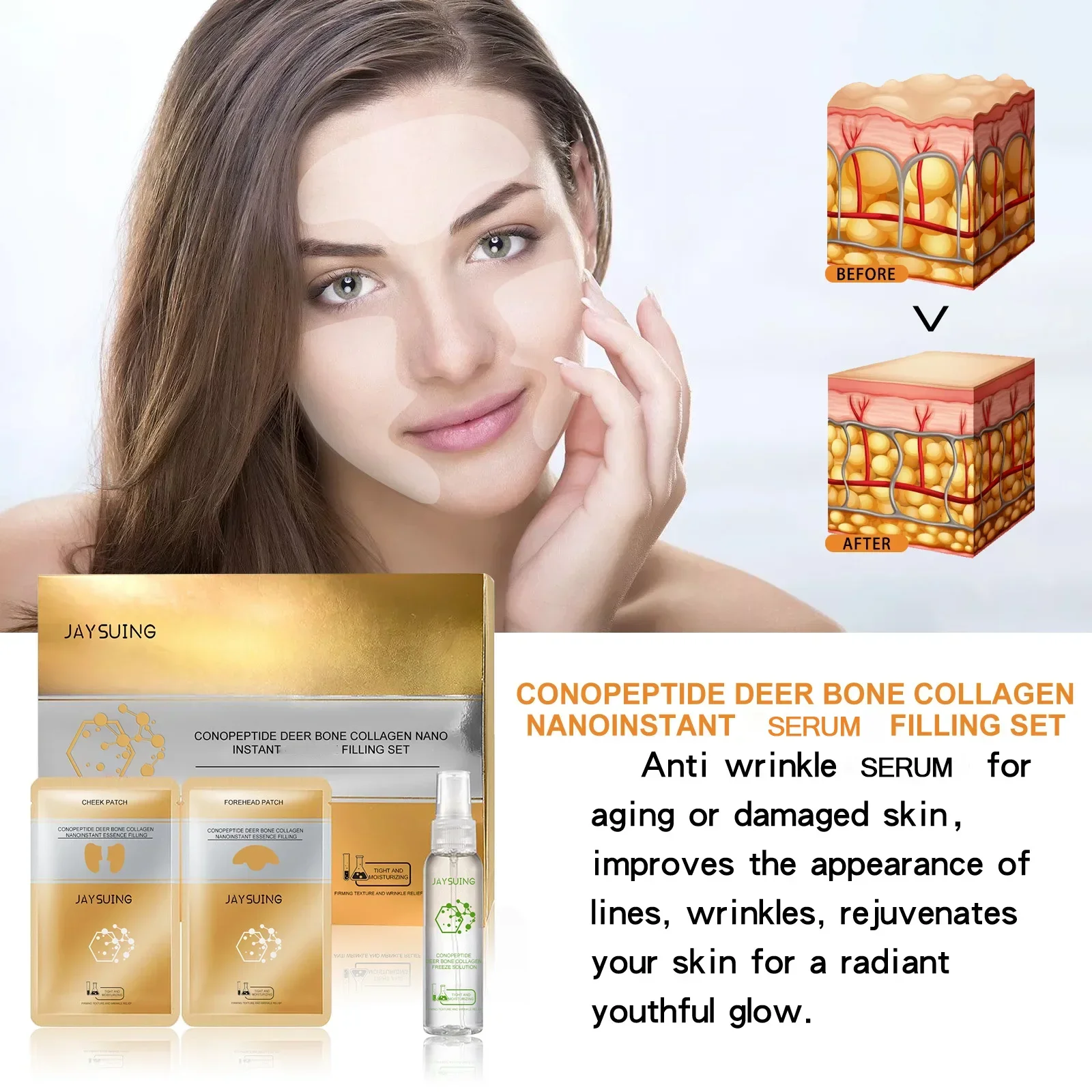 Absorbable Collagen Wrinkle Remover Face Serum Patches Set Lift Firming Fade Fine Lines Serum Whitening Moisturizing Skin Care