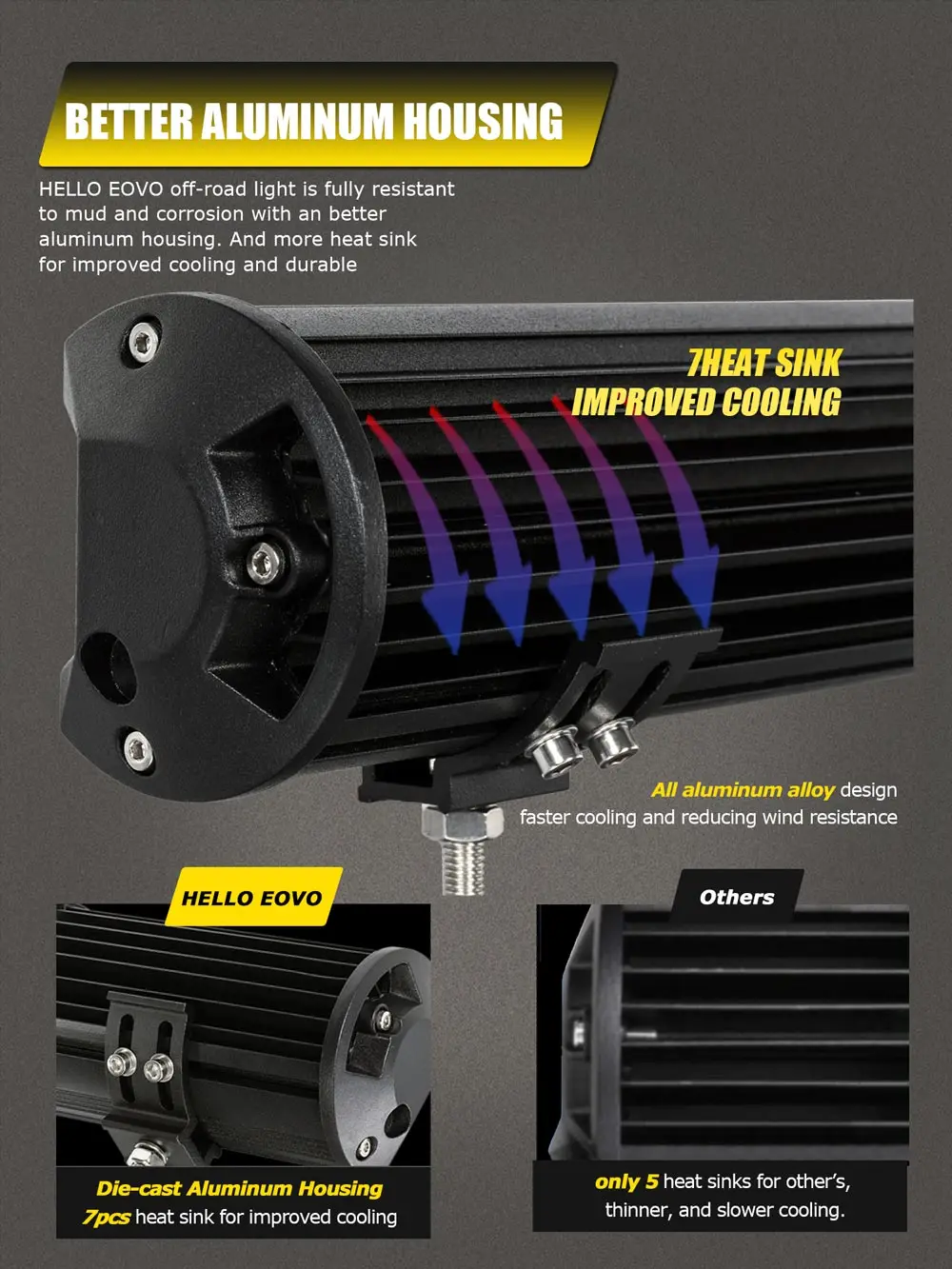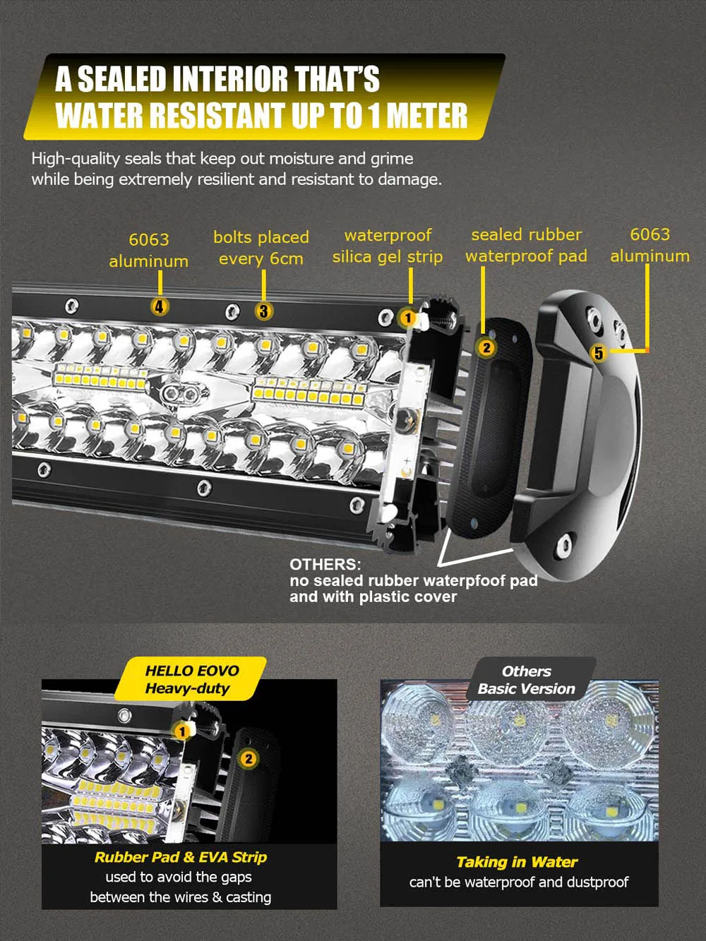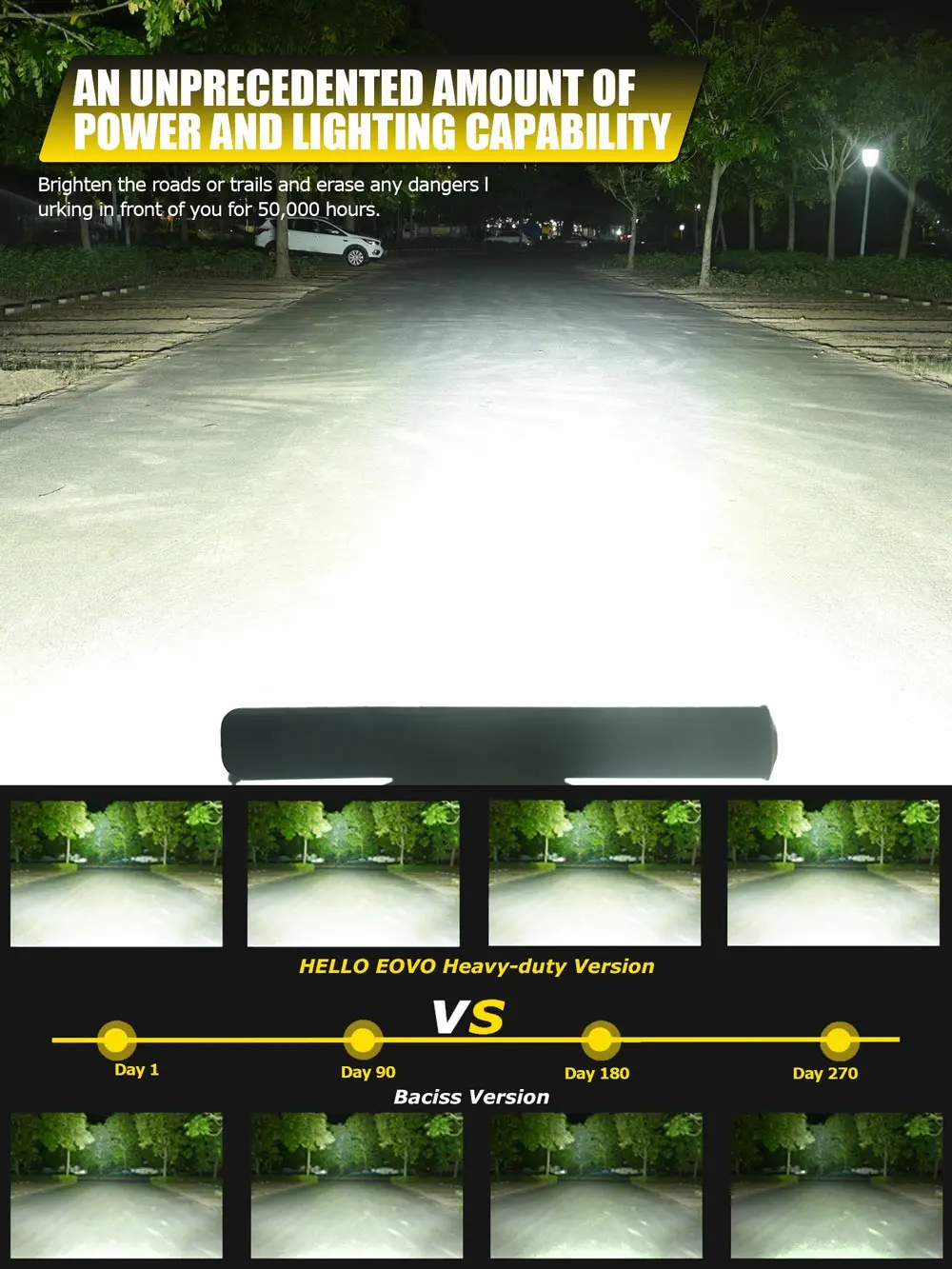Bringing the best of spot + flood, shooting an amazing hundreds of meters in distance and dozens of meters each side of the vehicle in flood beam.