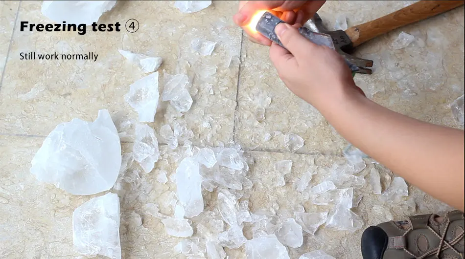 (2)Low voltage protection function: when the voltage of battery is 2.9-3.1V,the flashlight flashes 2times/sec with low brightness,it's a low voltage alarm.