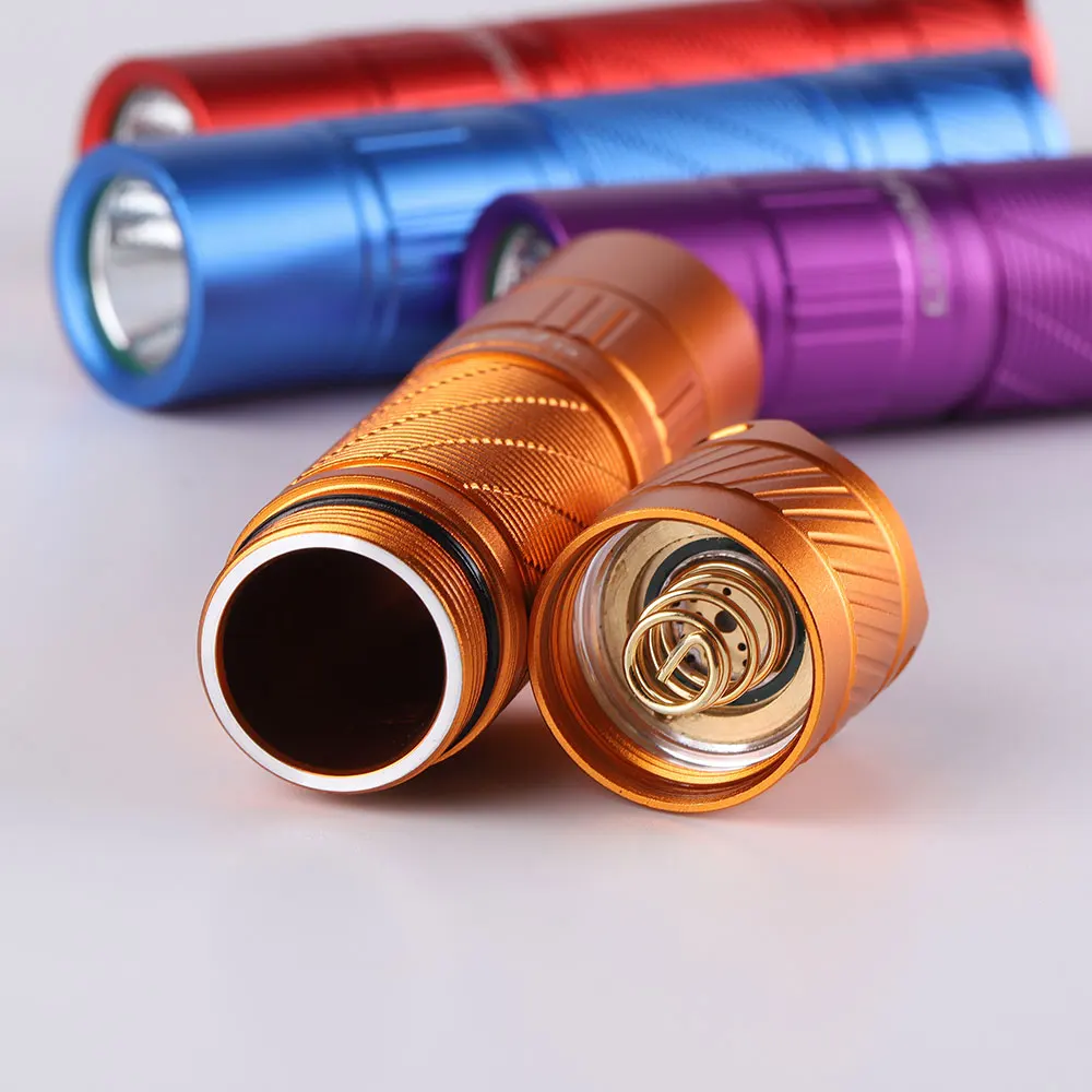 1. The flashlight is powered by a 1.5V battery or a 4.2V lithium battery. Switch the flashlight on or off by the tail switch (full click) or switch mode (Half-press).