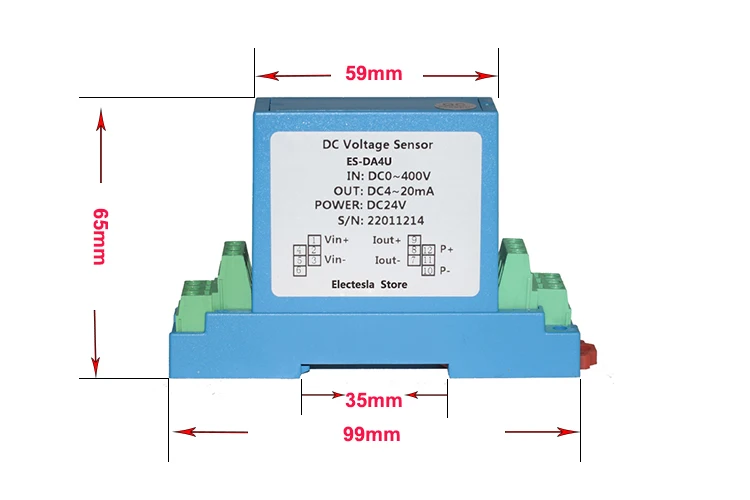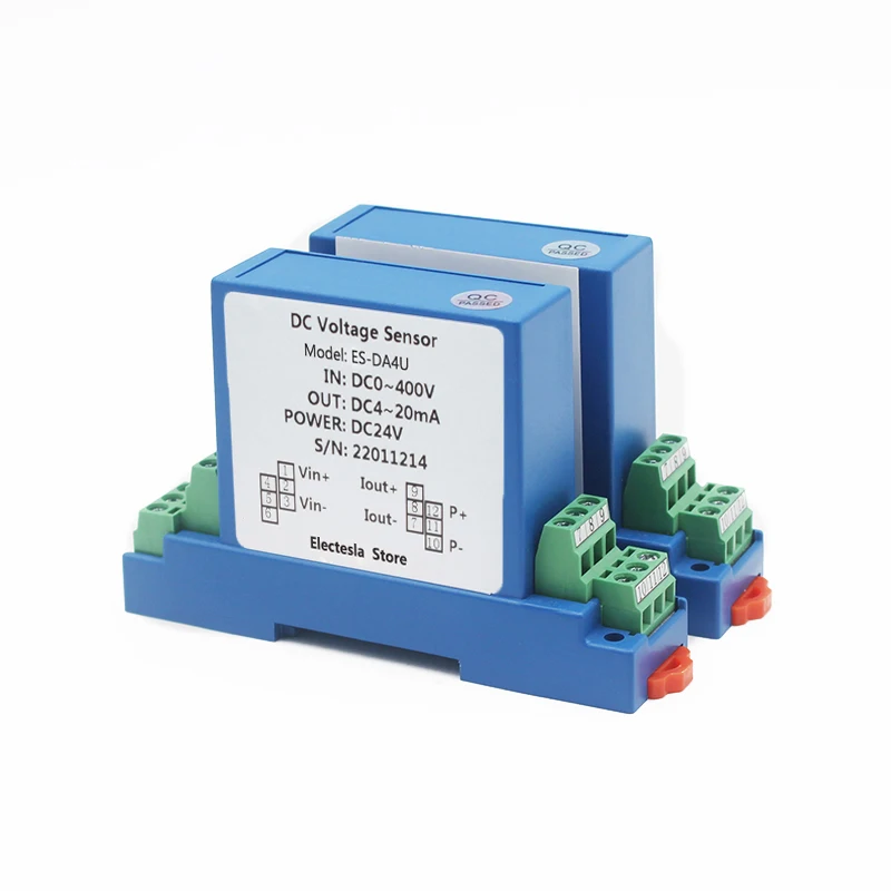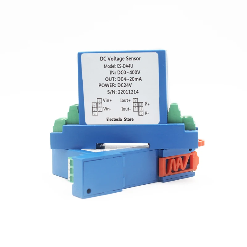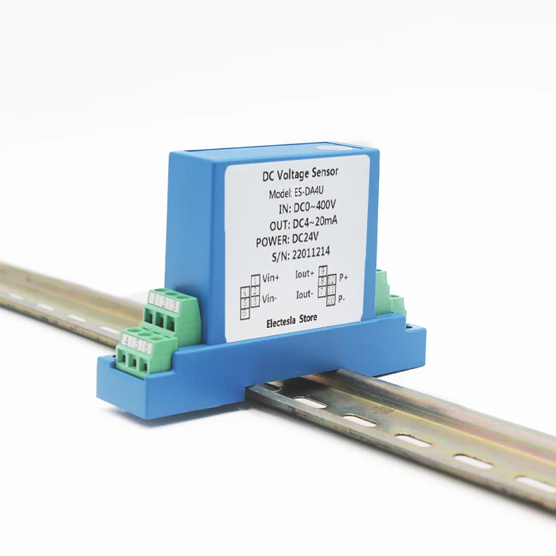 DC 0-1000V Voltage Transducer RS485 Output Transmitter Detector 4-20mA Analog Output 35mm Standard Rail High Voltage Sensor