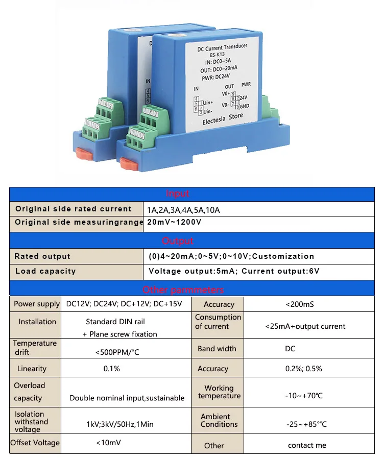 1>ES-K12 DC voltage transmitter is a measurement module which converts the measured current into