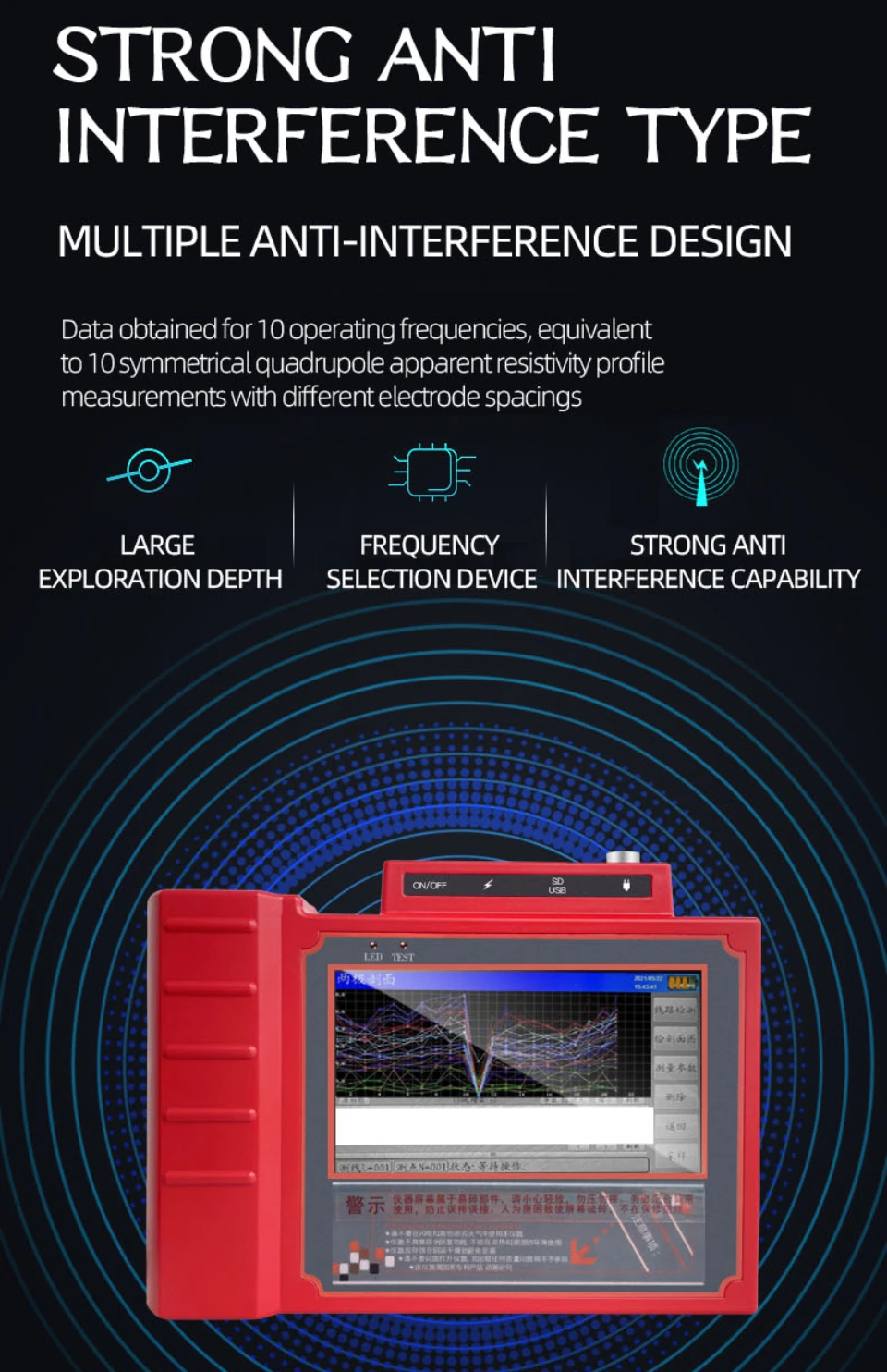 The resolution of measurement is up to 0.001mV, and precision is ± 2%. It gains high stability and abnormity curves matching with that of traditional geo-electrical equipment in lots of field survey. -