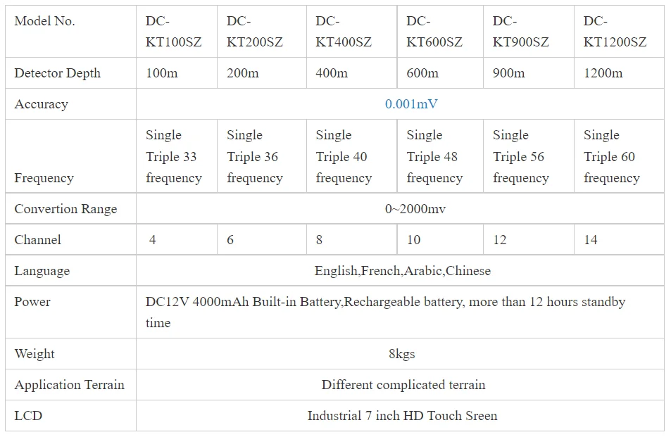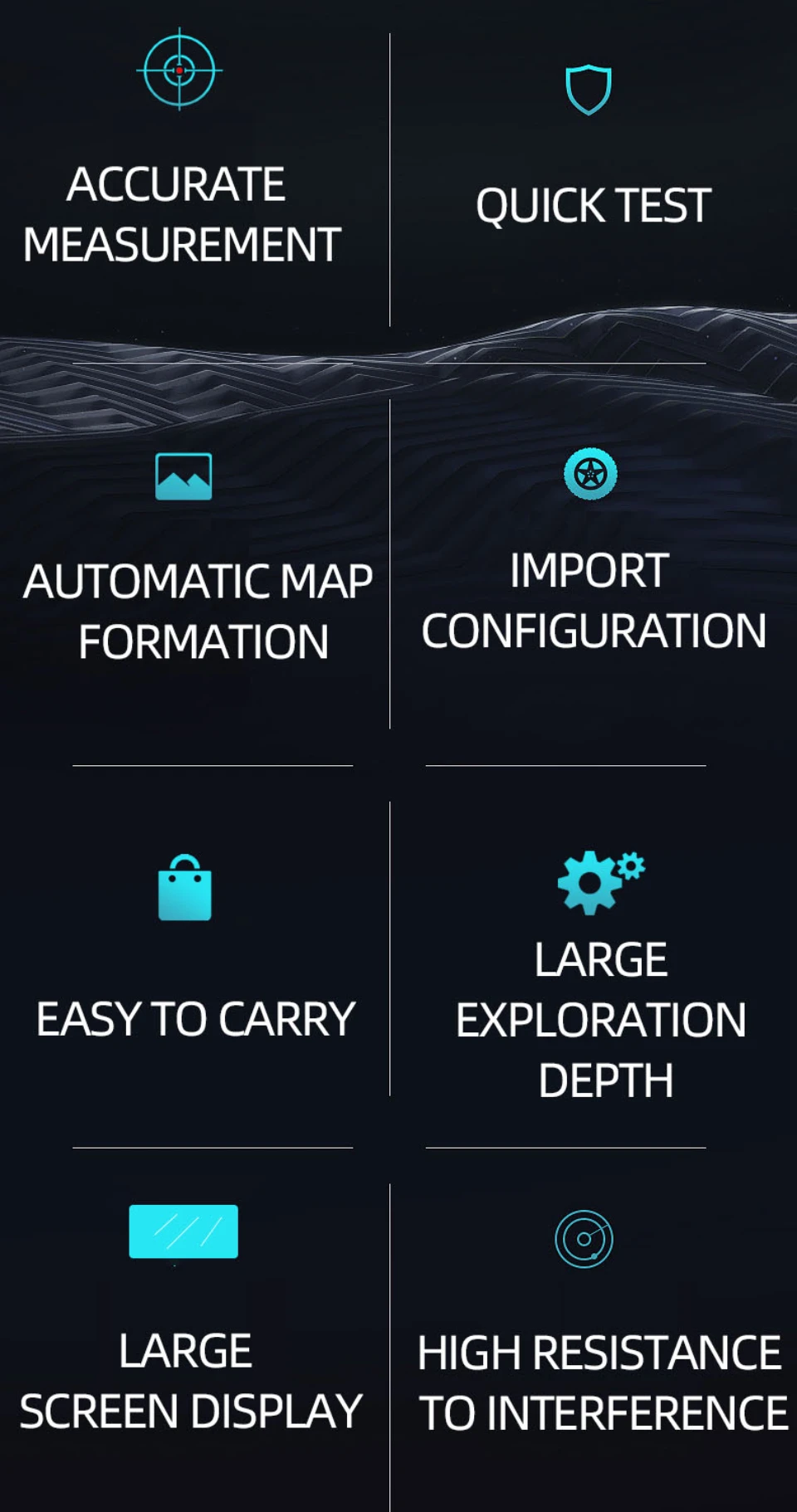 Without heavy power supply, it uses low frequency signals in earth natural electric field as signal source, and the complete set weight is less than 2kgs so easy to carry.