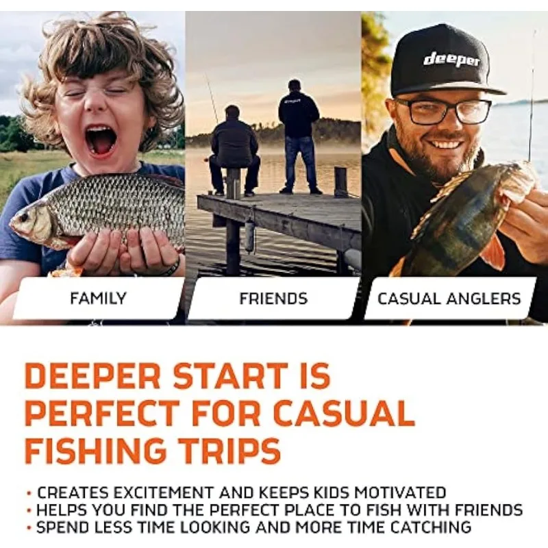 - READY TO GO – Easily find where your next catch is hiding with the Deeper START Fish Finder! The lightweight and sleek design makes for a seamless reel without any messy wires or fiddly external batteries required. Ideal for shore anglers and family trips who want to get on with catching!