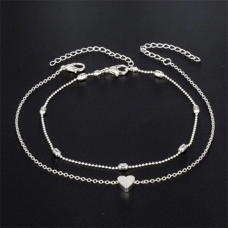 Delysia King Women Summer Round Bead Chain Love Anklet Simplicity Temperament Double-deck Holidays Ankle Bracelet