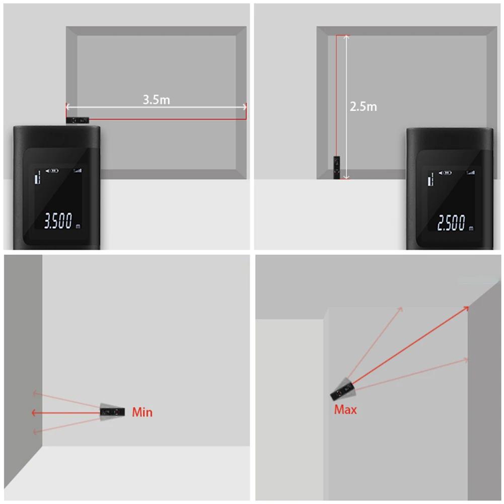 This accurate rangefinder can be used in home, construction, industry, residential, warehouse and more. It is powered by an energy-saving and environmentally friendly lithium battery, which allows you to measure distances 2000 times when fully charged. The measuring device provides you with 3 different units including meters, inches and feet, and you can choose the appropriate unit for a quick measurement.