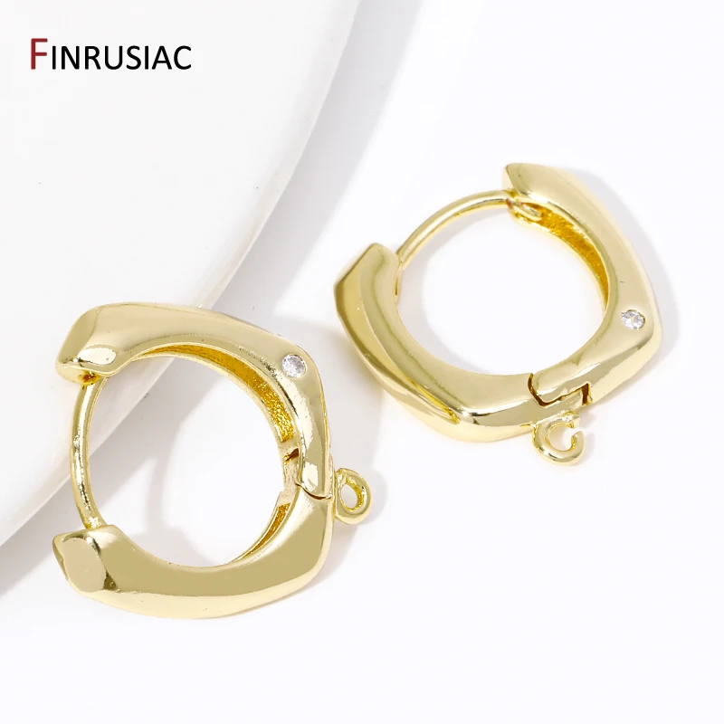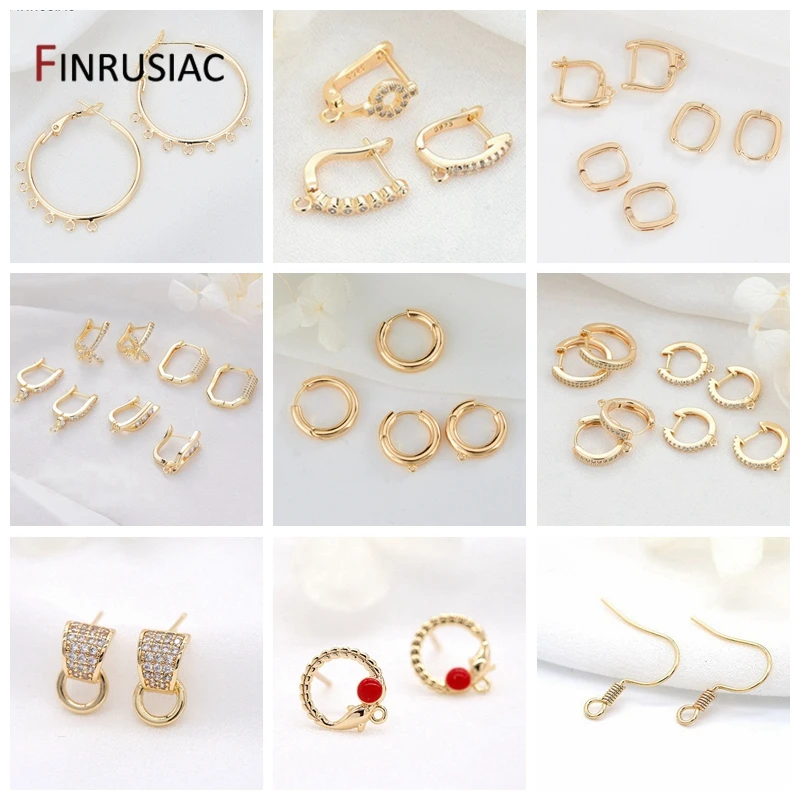 DIY Women Earring Making Accessories 14K Gold Plated Brass Zircon Fastener Earwire Fixtures Hooks Clasp For Earring Findings