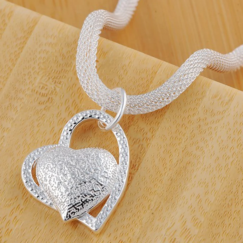 DOTEFFIL Silver Color 18 Inch Double Heart Pendant AAA Zircon Necklace For Women Fashion Wedding Charm Jewelry