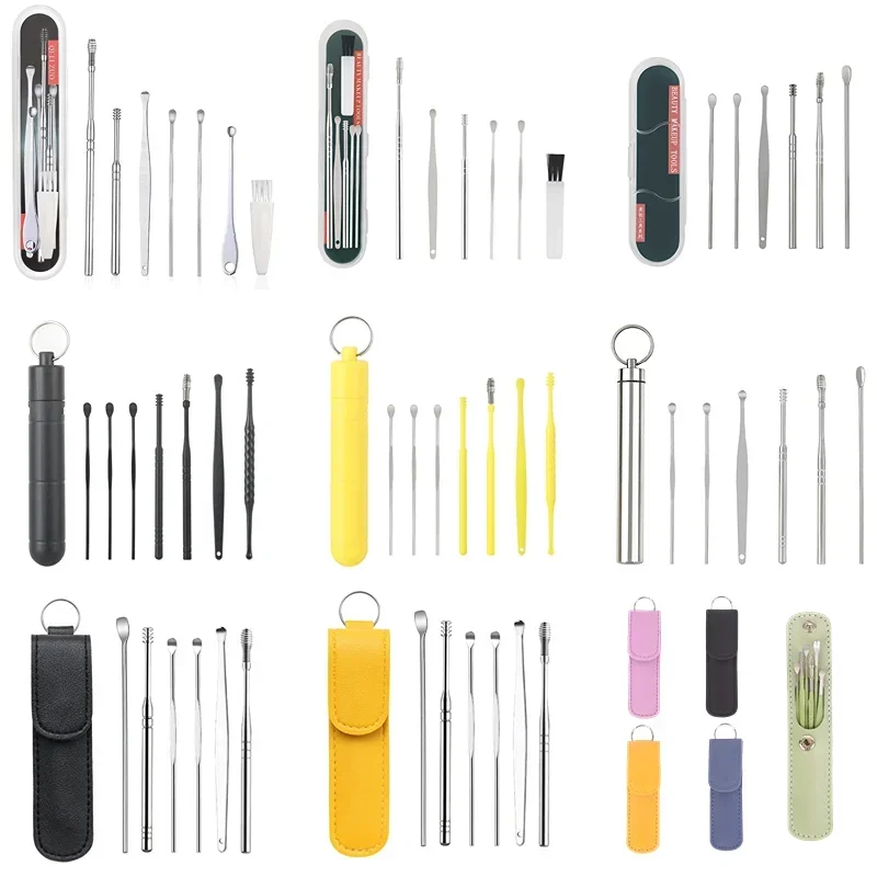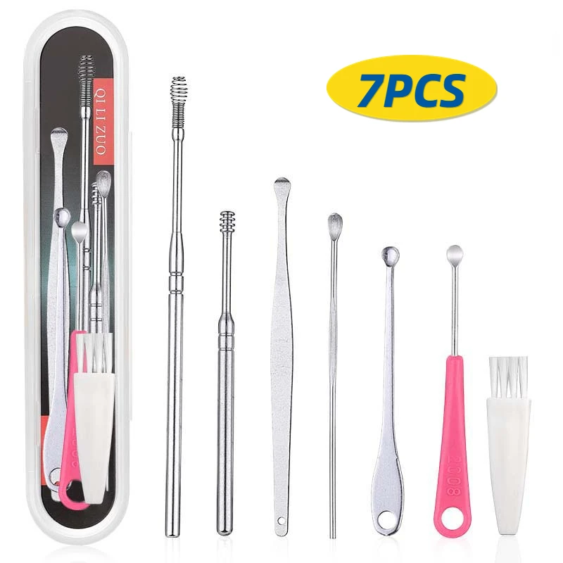 Ear Cleaner Ear Wax Remover Cleaning Kit Pickers Pick Earwax Curette Spoon Care Removal Tool for Baby Adults Ear Care Set 6-8Pcs