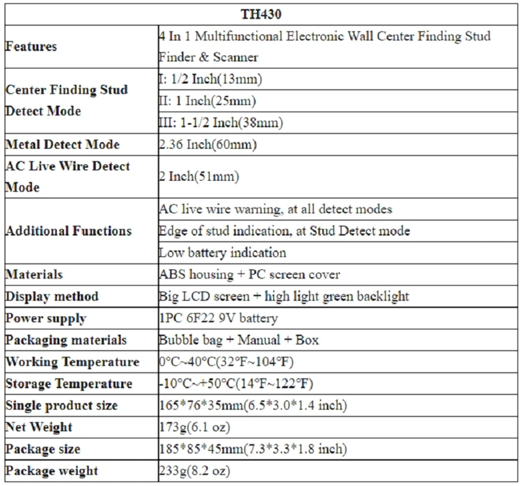 3. Indication signal: This wall detector has LCD backlight display and sound indication, you can clearly know the thickness of the detection.