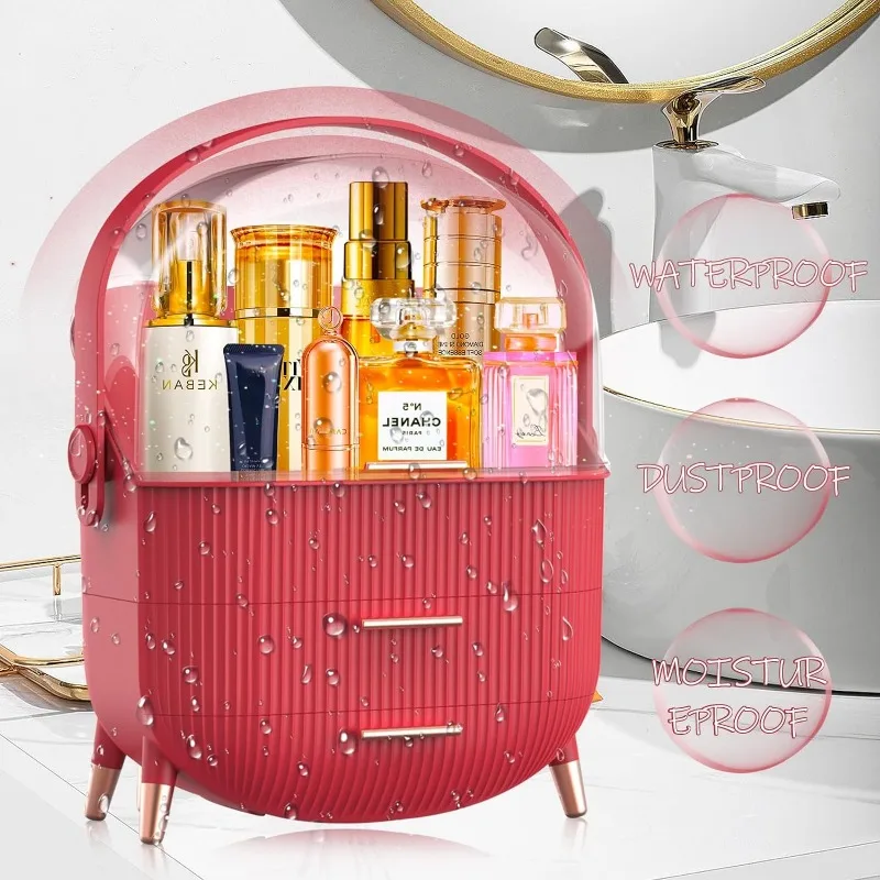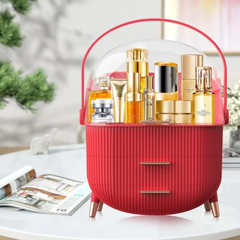 - [Stunning & Awarded Design]With a stunning curved design(golden plated supporting legs and drawer handles, this makeup organizer is also a charming ornament for any countertop, vanity or dresser.