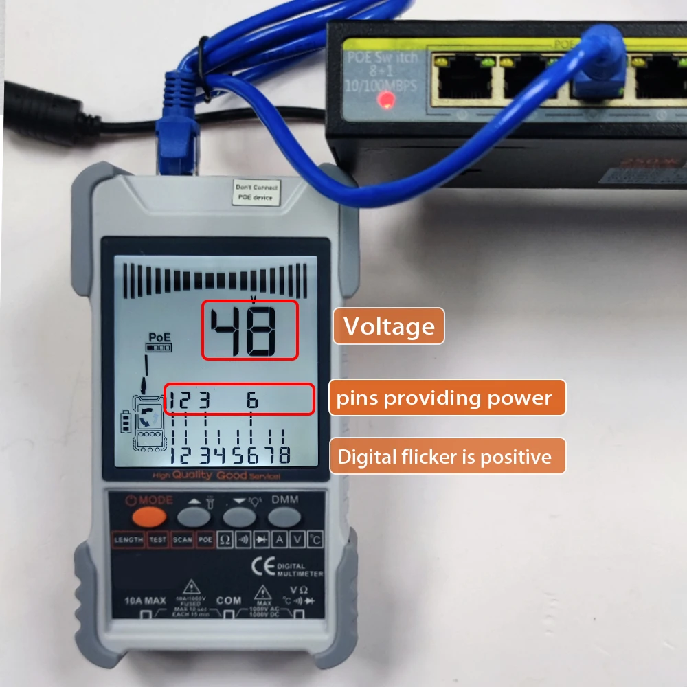 POE Test: POE testing can check cable mapping polarity and voltage of POE network switches.