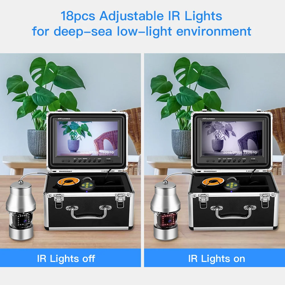 Omni-directional observation. Use the remote control to control the direction, horizontal 360°, giving you more fishing information. The camera weighs 2 lb, which will be more stable under flowing water.