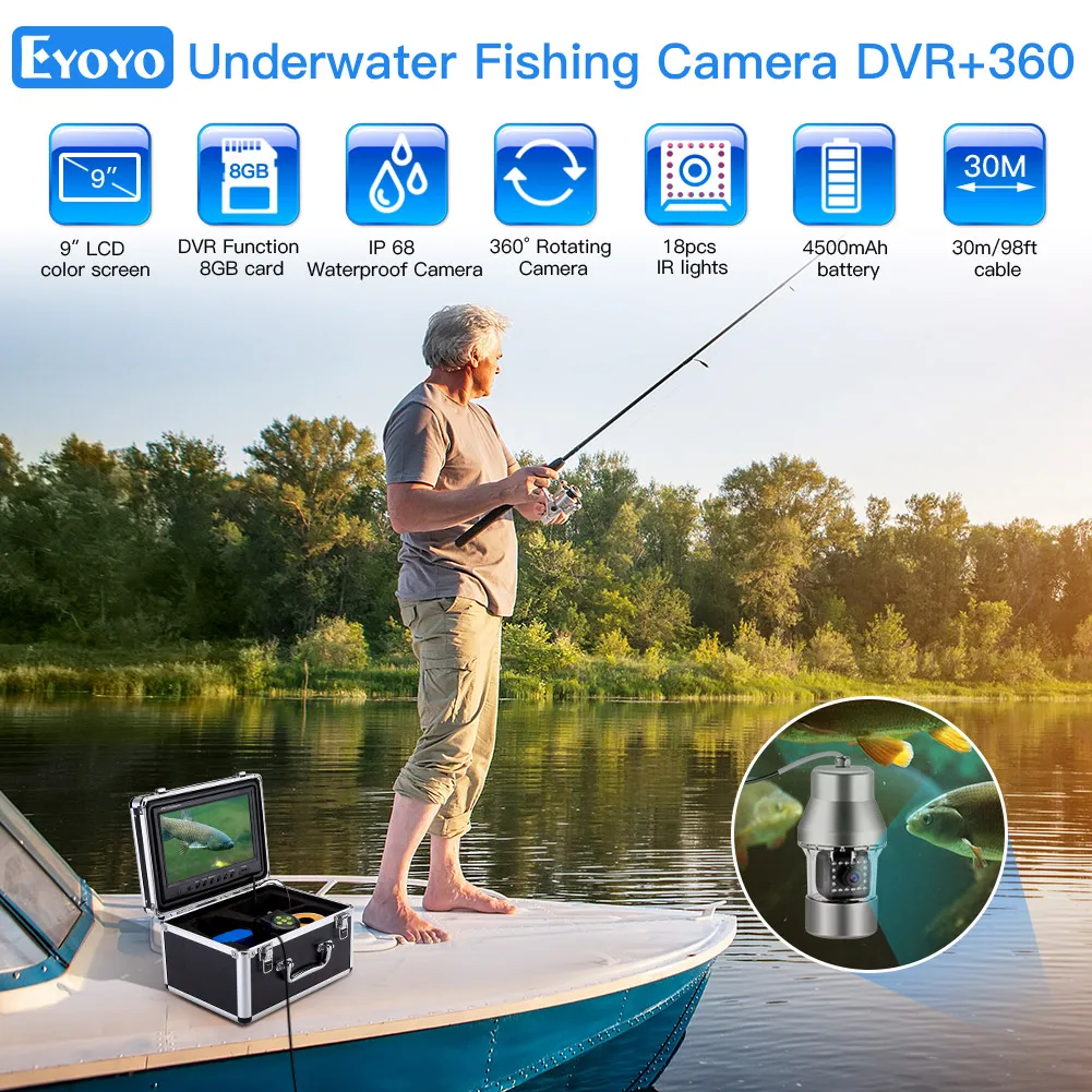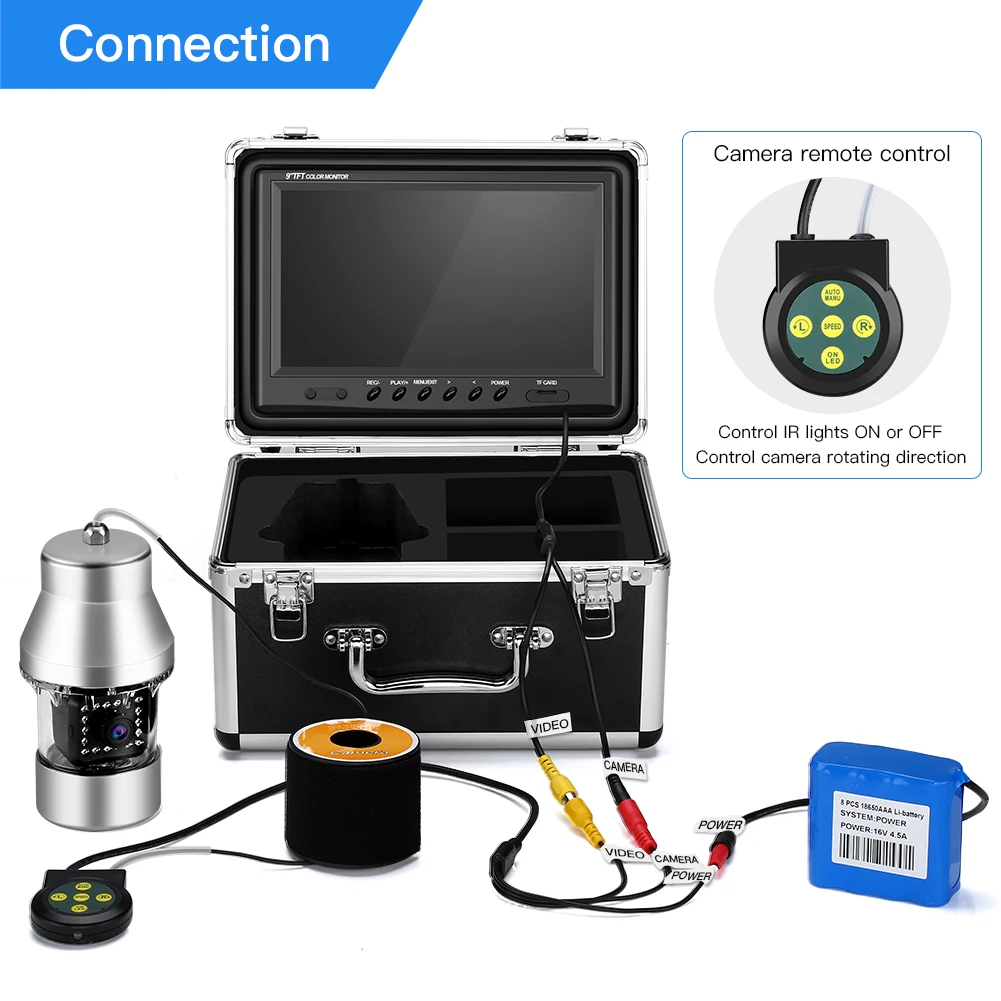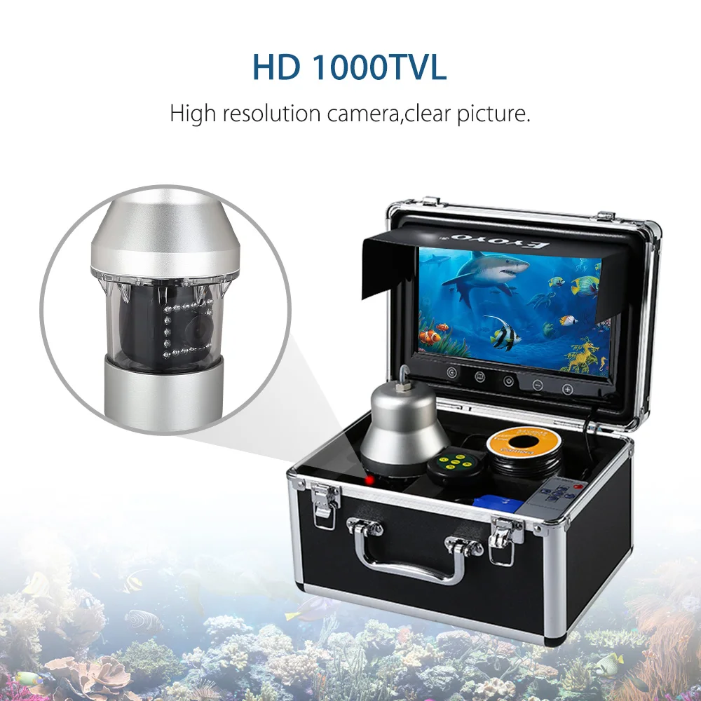 1. 360° Full View Angle Fishing Finder Kit: 9-inch large LCD color monitor displays 1000TVL high-definition vivid images.