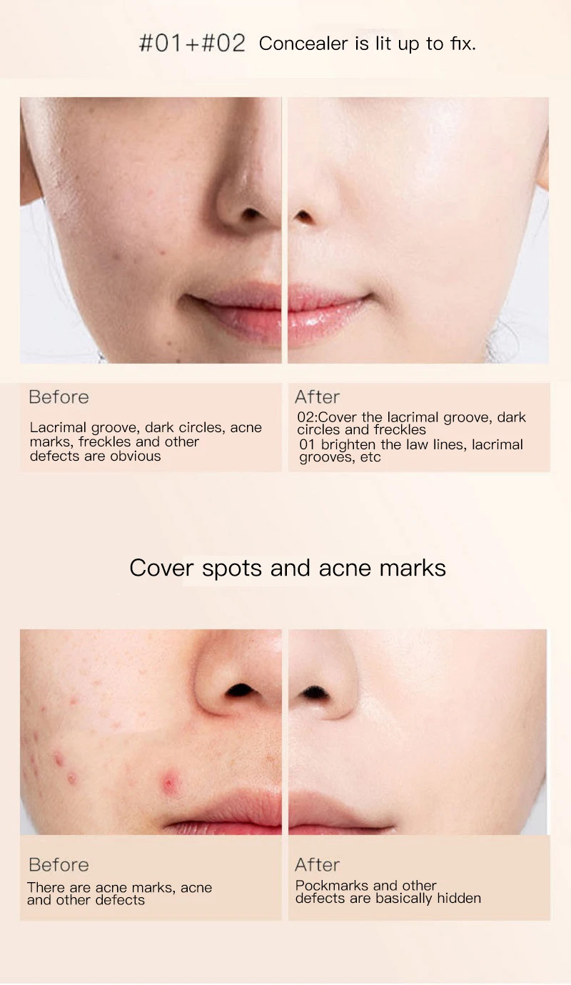 Excellent concealing power, can easily cover blemishes, acne marks, spots, etc.