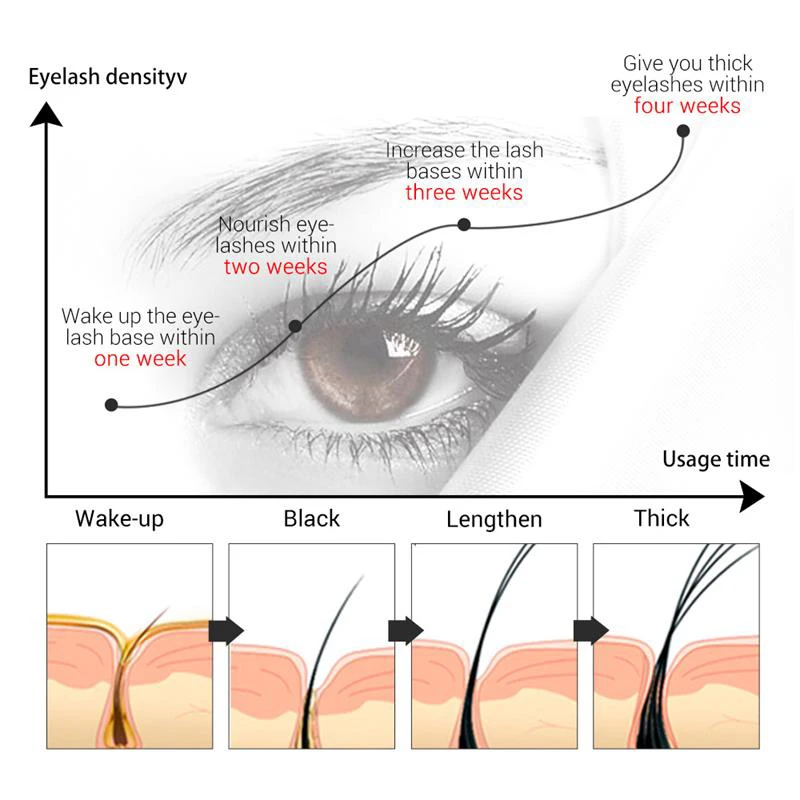 👍1. Activate hair follicles, eyelash growth factors, activate hair roots in a rotating state, and stimulate eyelash activity.