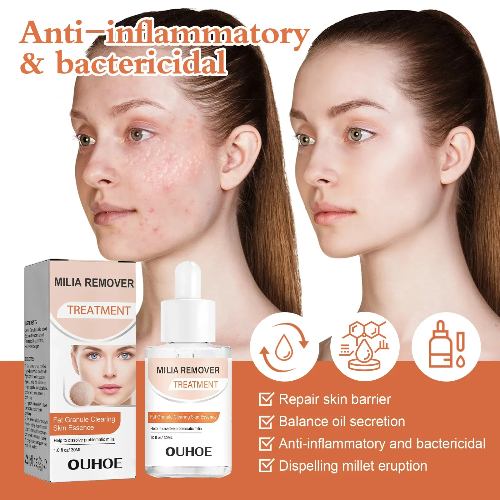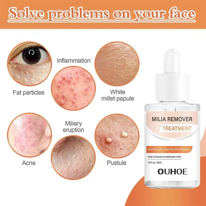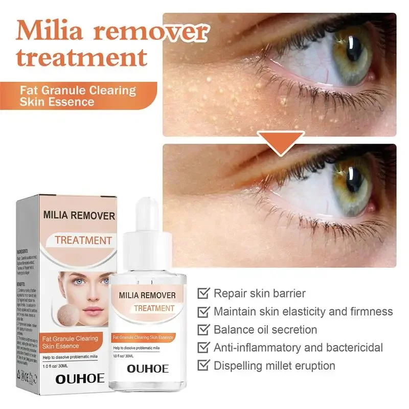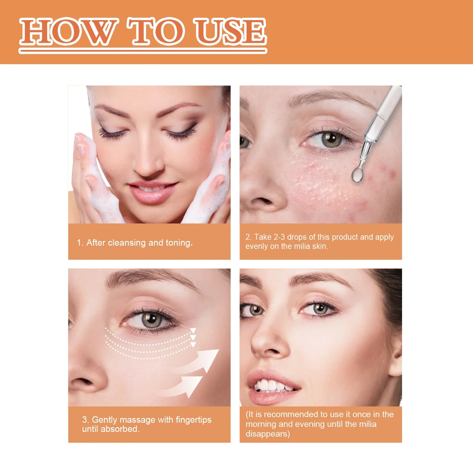 ●2.Take 2-3 drops of this product and apply evenly on the milia skin.