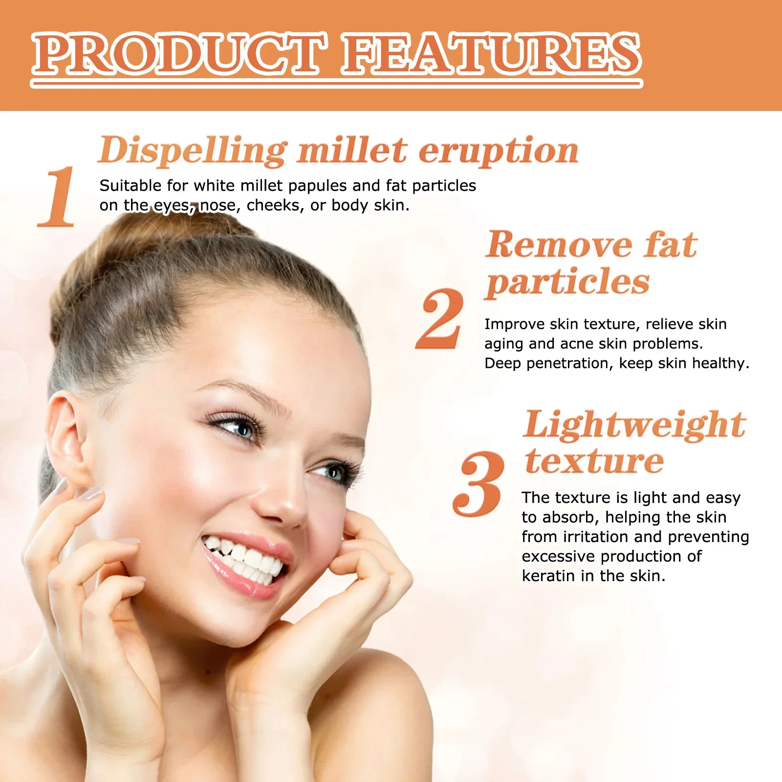 ●2.【Prevent Growth】Effectively reduce white miliary rash,syringoma, cyst and sebaceous gland hyperplasia around eyes, nose, cheeks and body.