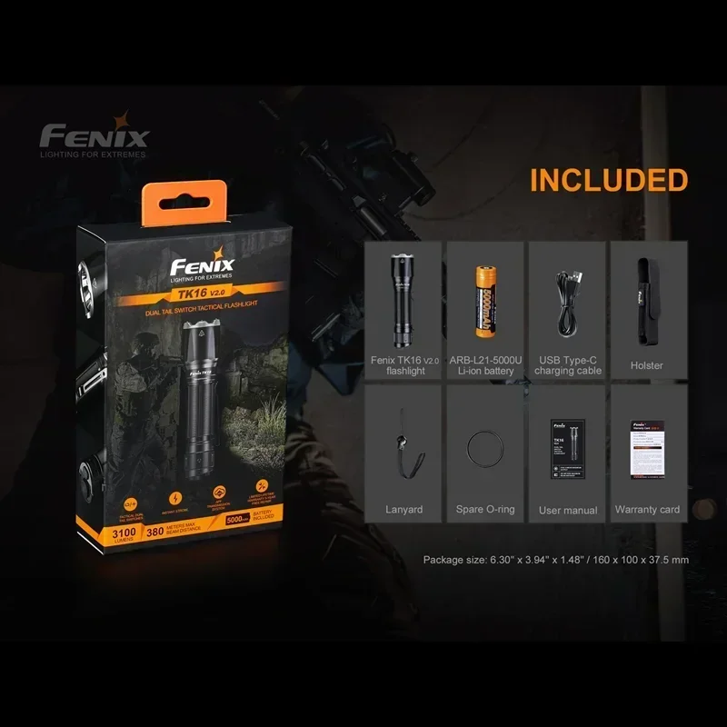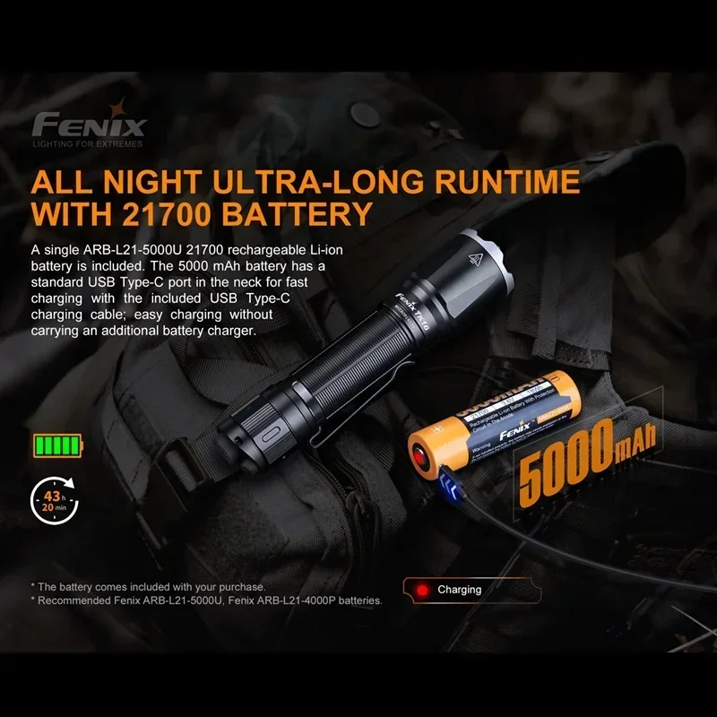 Included a Fenix ARB-L21-5000U rechargeable Li-ion battery.