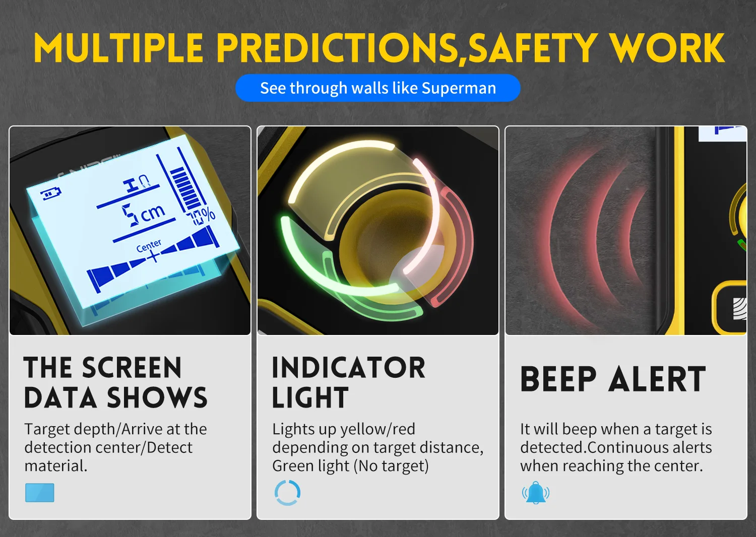 FNIRSI WD-01 Metal Detector Wall Scanner With Newly Designed Positioning Hole For AC Live Cable Wires Wood Stud Find