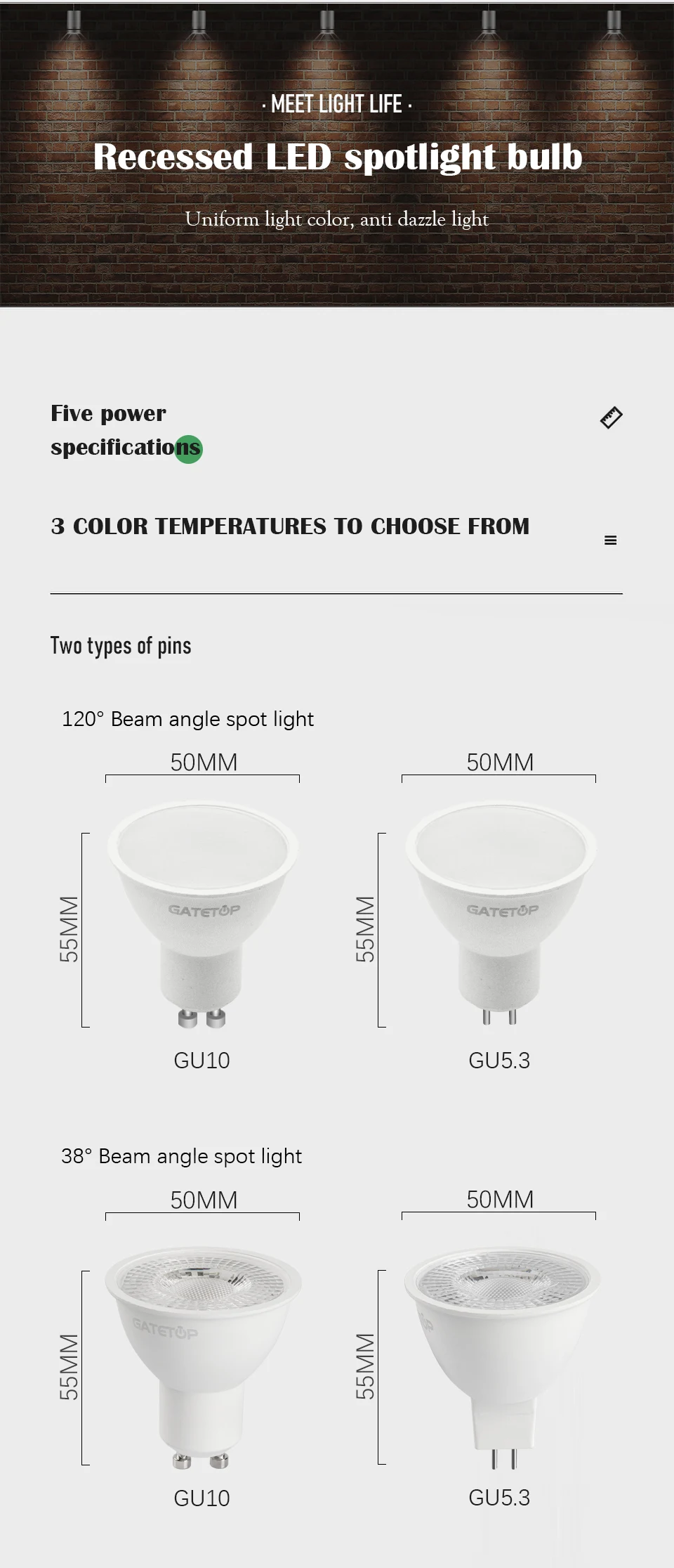 Factory direct sale LED bulb spotlight downlight 220V 110V 3W-24W high luminous efficiency non flickering living room kitchen bathroom children's room bedroom office