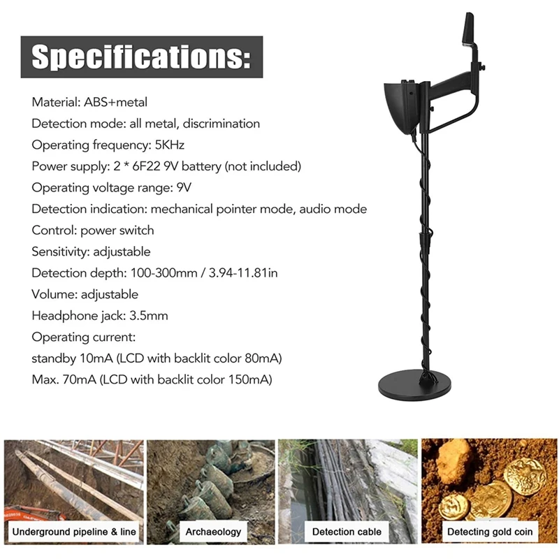 5. Waterproof Search Coil – Lets you search for metal objects under shallow water. Adjustable Stem – Lets you adjust the detector’s length.