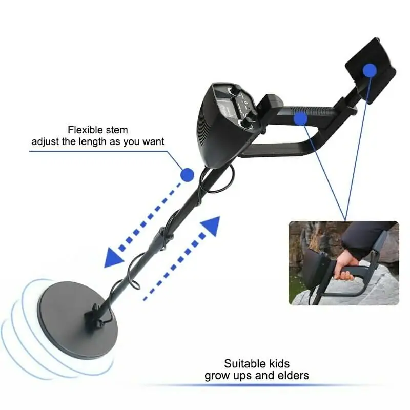 5. Waterproof Search Coil – Lets you search for metal objects under shallow water. Adjustable Stem – Lets you adjust the detector’s length.