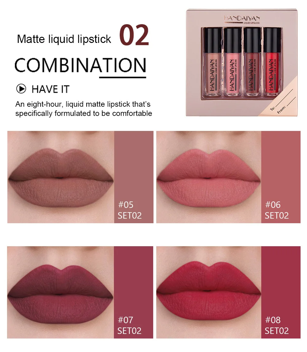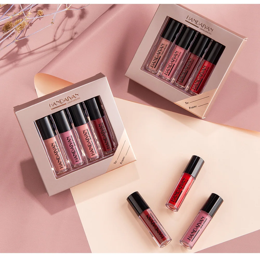 HANDAIYAN Lipstick Set Sexy 4 Colors Lip Gloss Matte Lipstick Waterproof Non-stick Cup Cosmetics Makeup