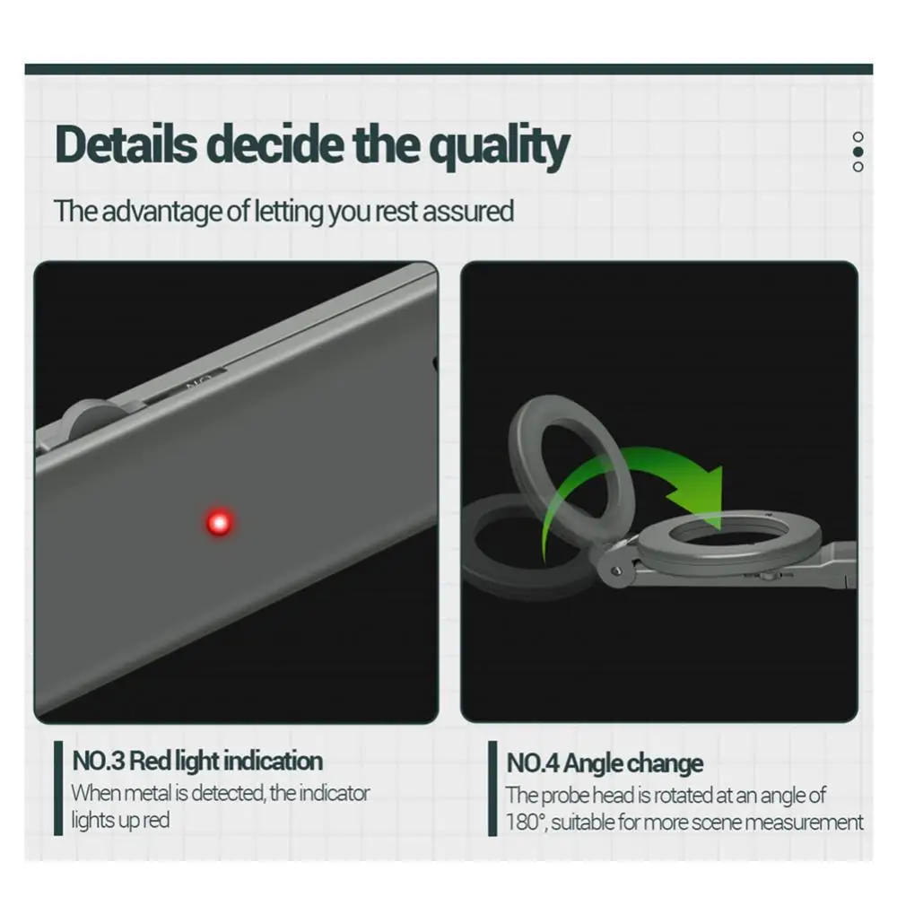 3. Red light indicator: when metal is detected, the indicator light is red.
