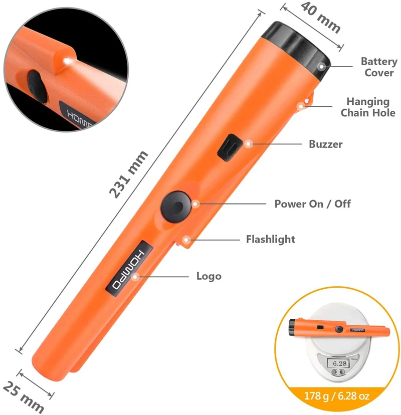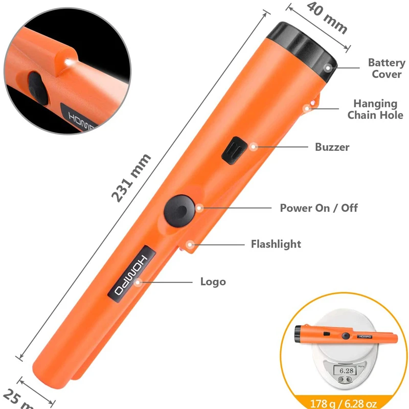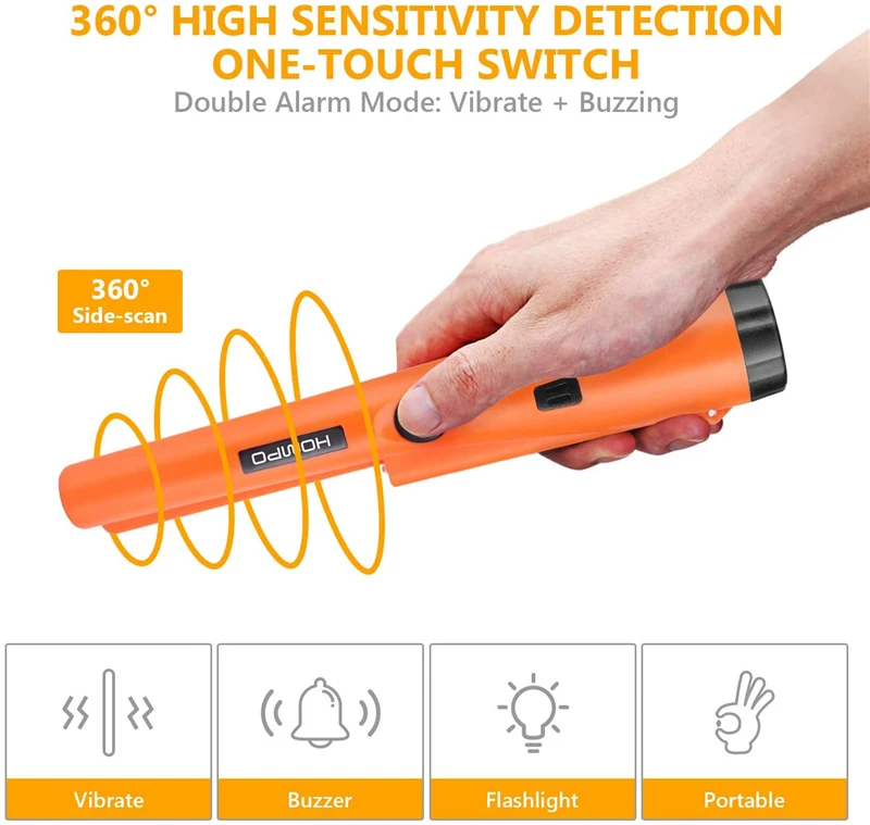 【Precise positioning & partial waterproof】 the pin pointer help you locate smaller targets accurately and quickly. In addition, the needle pointer part is waterproof, and you can even use the needle pointer to detect something in the water (please note that the LED lamp parts are non-waterproof).