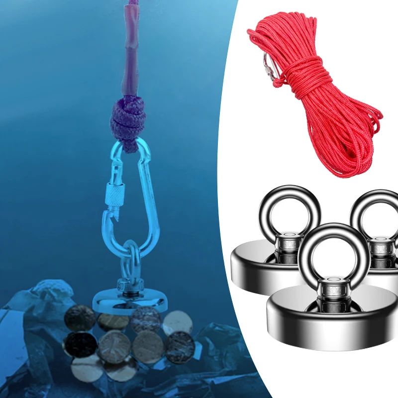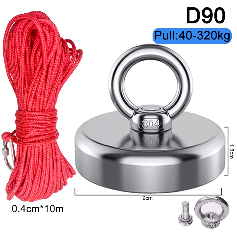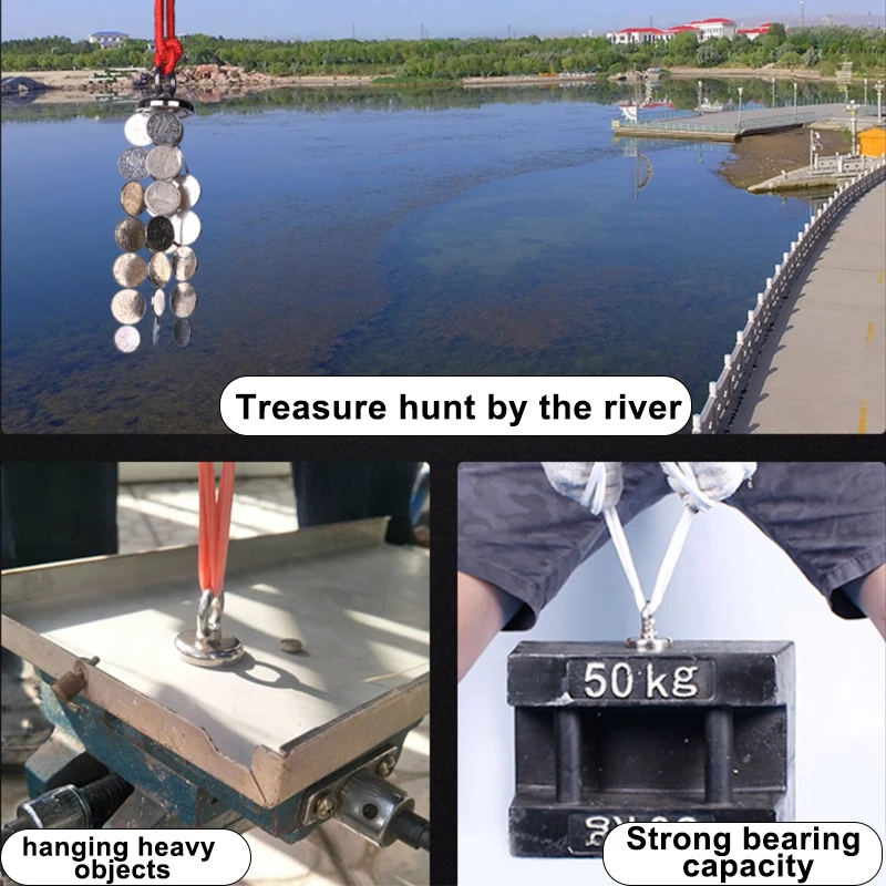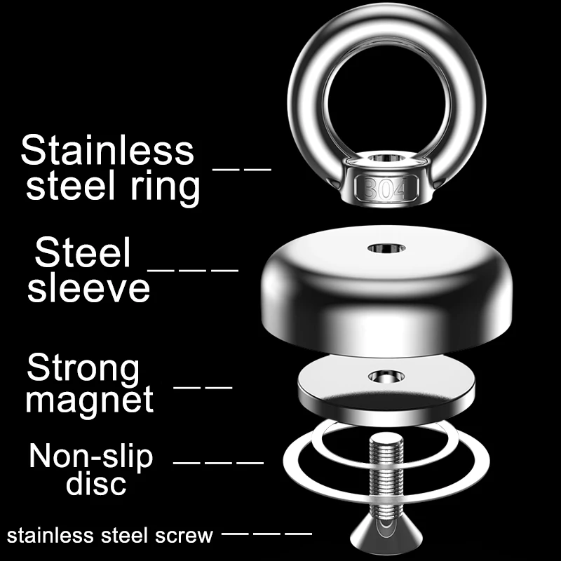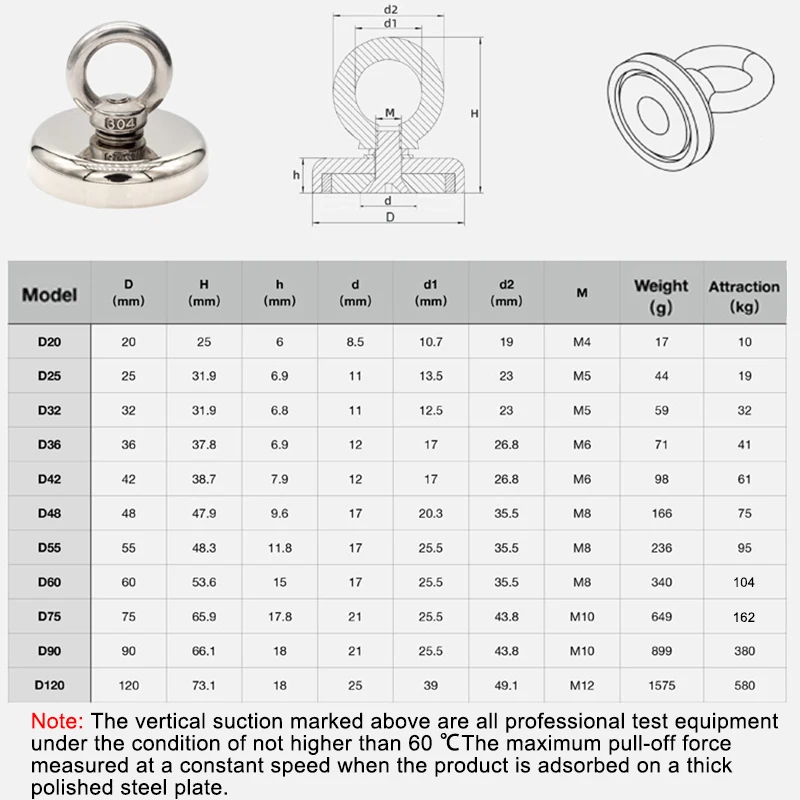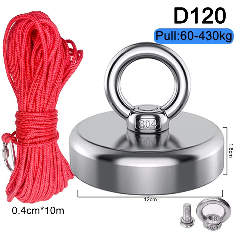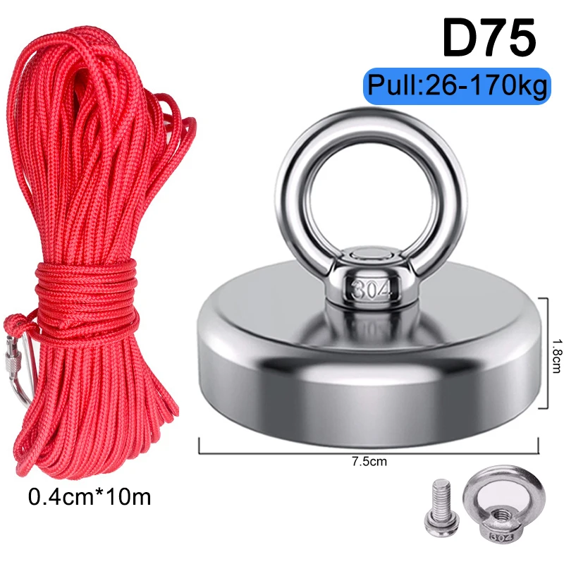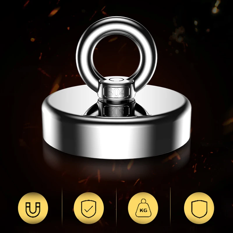 Unique design with Countersunk Hole and Eyebolt Great for salvaged of various iron-containning nickel material underwater and Good idea for magnet fishing, lifting, hanging, retrieving applications.