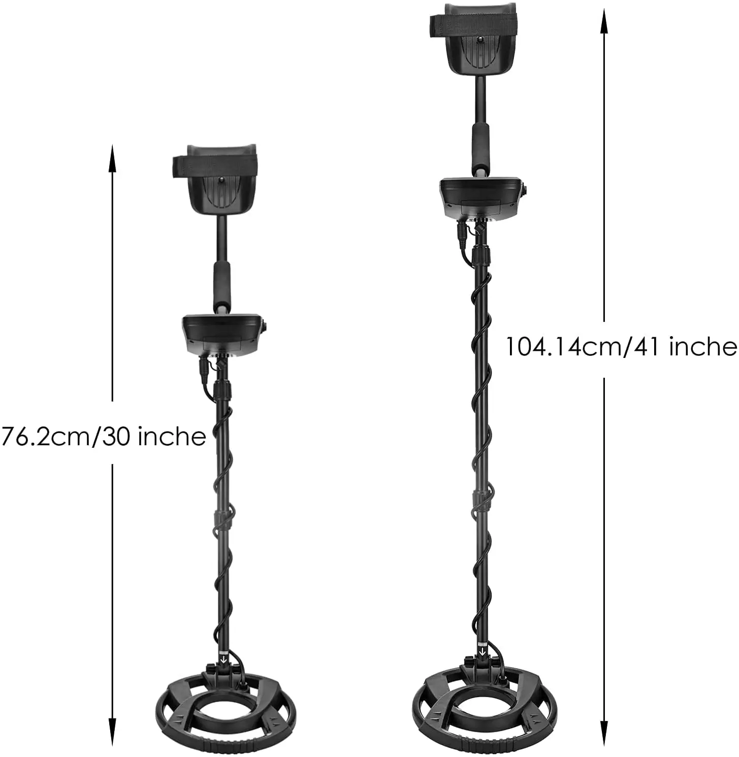 【Easy to Use & Comfortable Design 】The professional metal detector is light in weight, weighing only 3.5 pounds. The length of the rod can be adjusted from 30 inches to 41 inches. The handle covers the back of the hand. It's easy to use for a long time. This metal detector equipped with 3 different tones (low-middle-high), can help user to find which kind of metals to be detected. You can choose to focus in different environments and enjoy it.