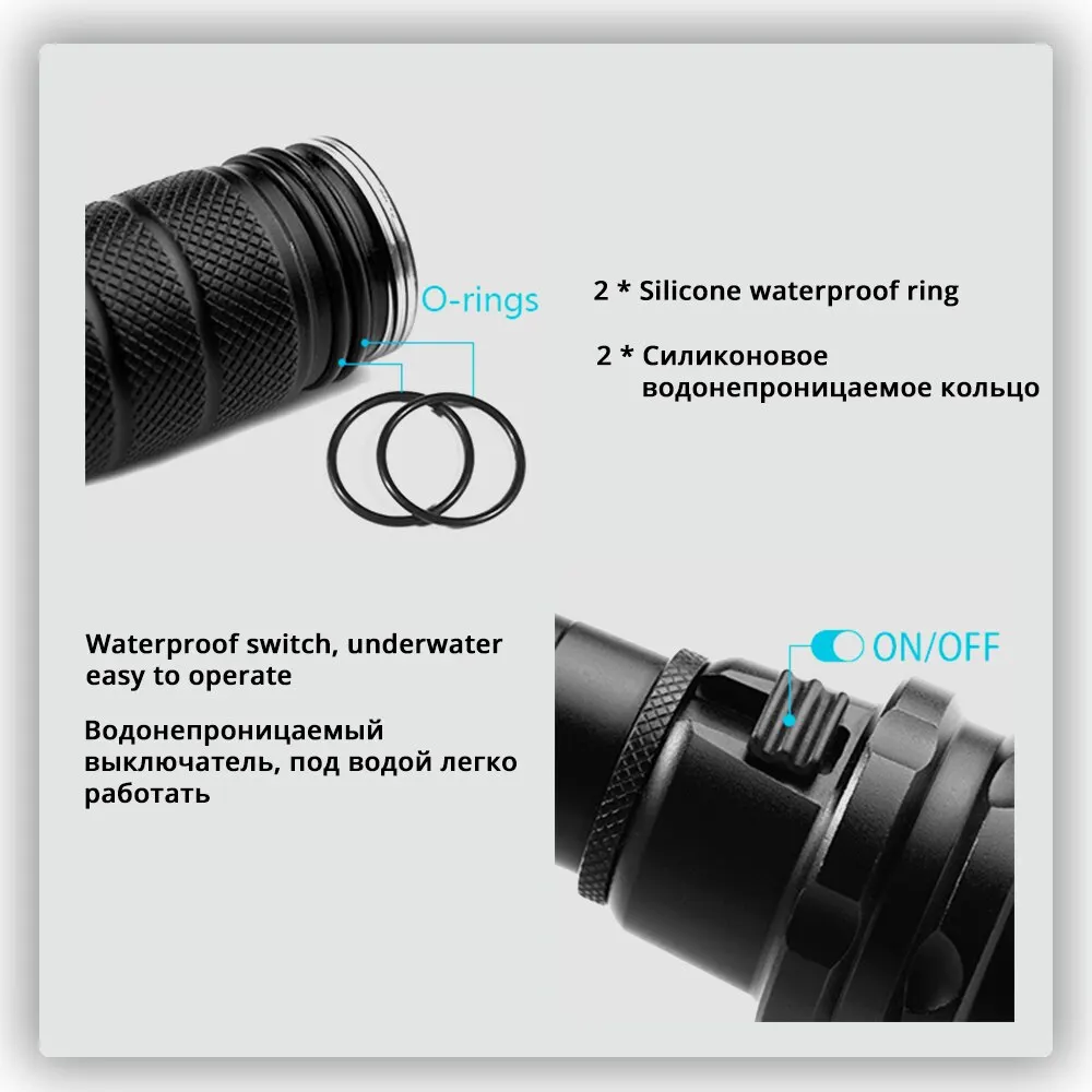 There are 2 O-rings to enhance the waterproof performance of the diving flashlight.