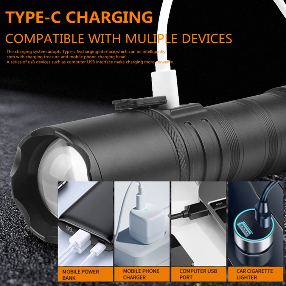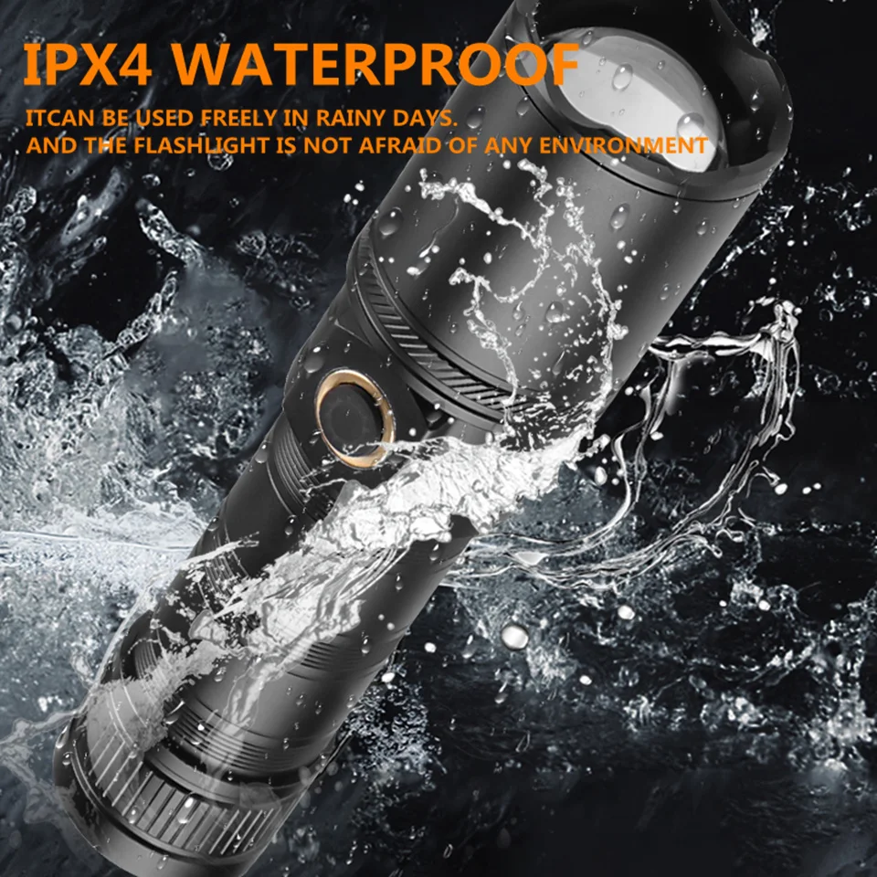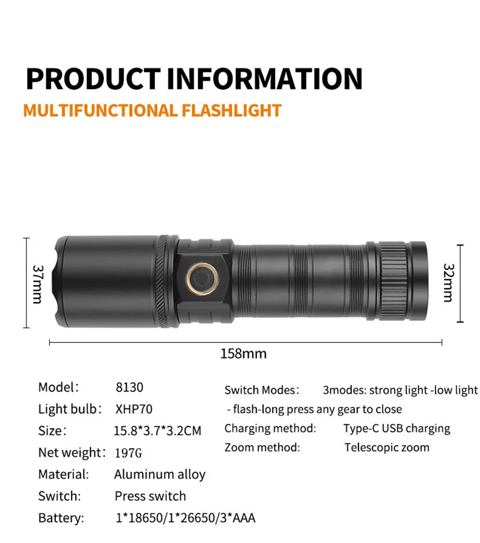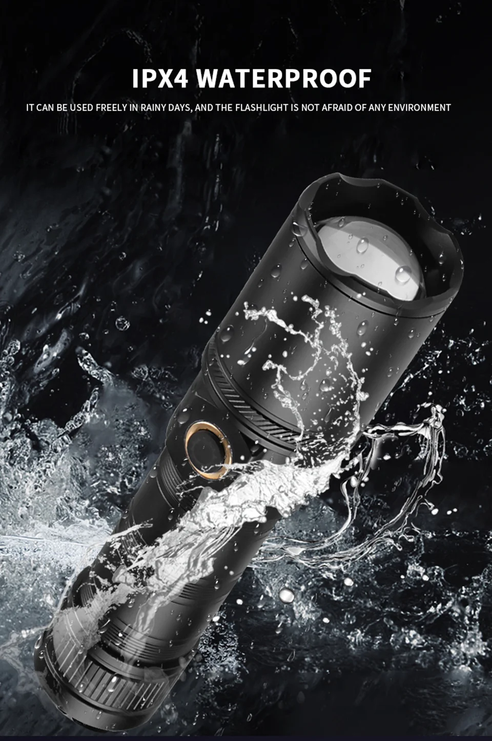 Package B:1*flashlight,1* 26650 rechargeable battery,1* USB cable,1*lanyard,1*package box