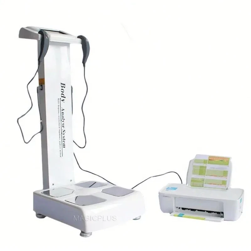 Body composition analyzer based on multiple frequency bioelectrical impedance testing principle, point touch electrode method is used to test each part of the human body biological impedance, detection of human body all sorts of elements, analysis of the human body health (including: weight, protein, fat, water, inorganic salt, waist, arm ratio, etc.). To control weight, slimming, muscle training, nutrition balance, and to provide scientific and effective data diagnose diseases, etc. This instrument has the body composition, muscle, fat, fat analysis, health assessment, etc. Widely used in hospitals, rehabilitation center, fitness weight-loss center, sports fitness club and other fields.