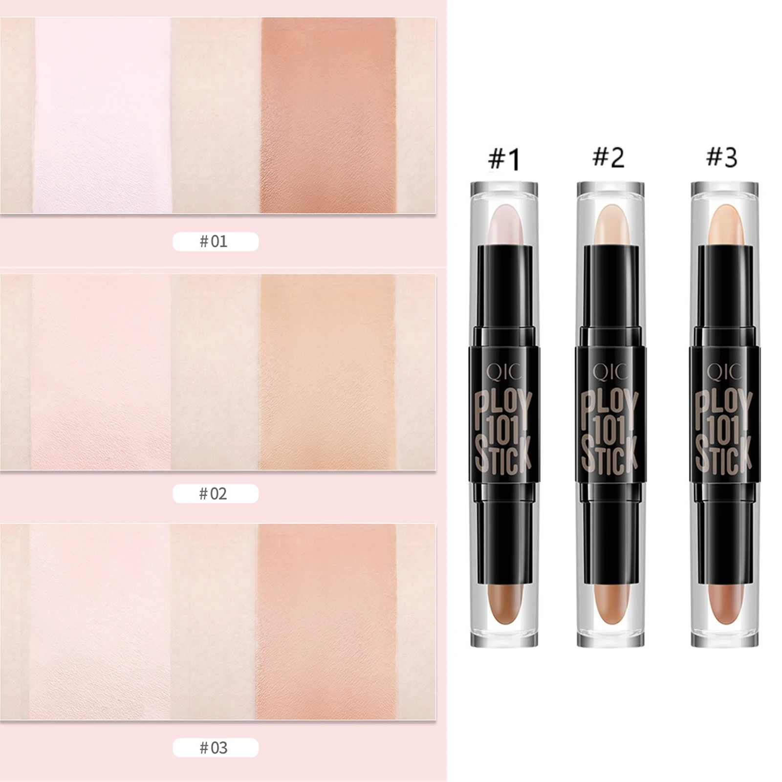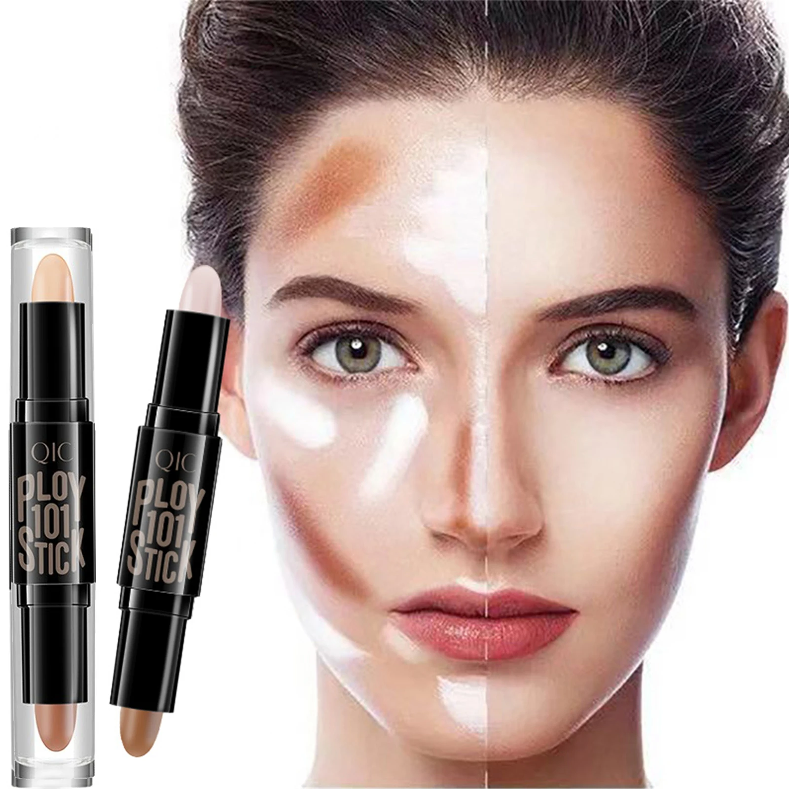 QIC Double-end Face Highlight & Contour Stick Oil-control Concealer Pencil Facial Highlight Corrector Pen Long Lasting Makeup
