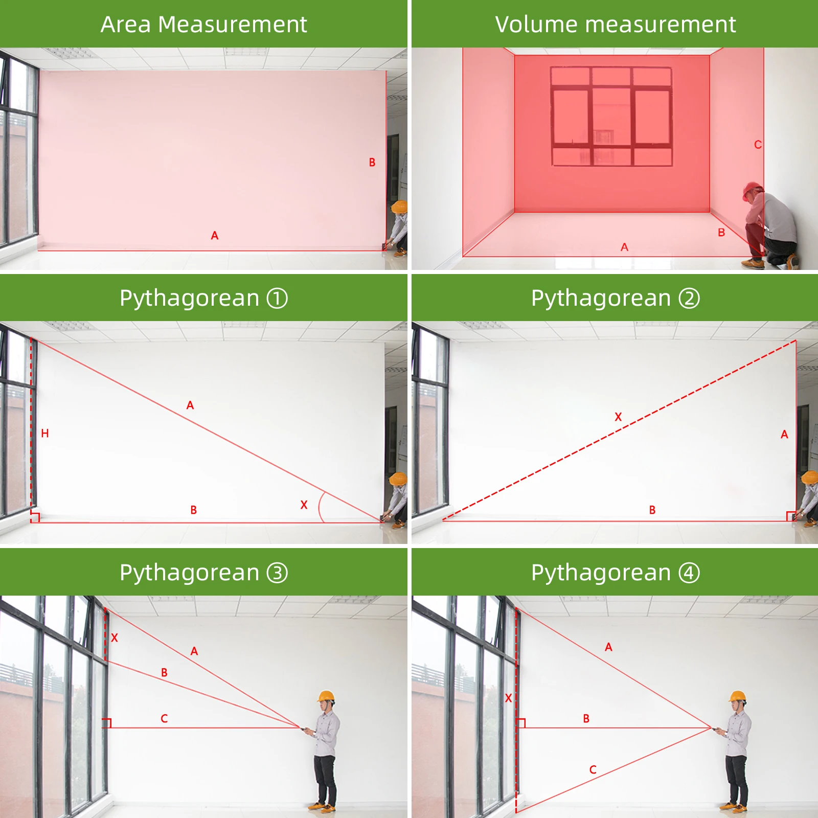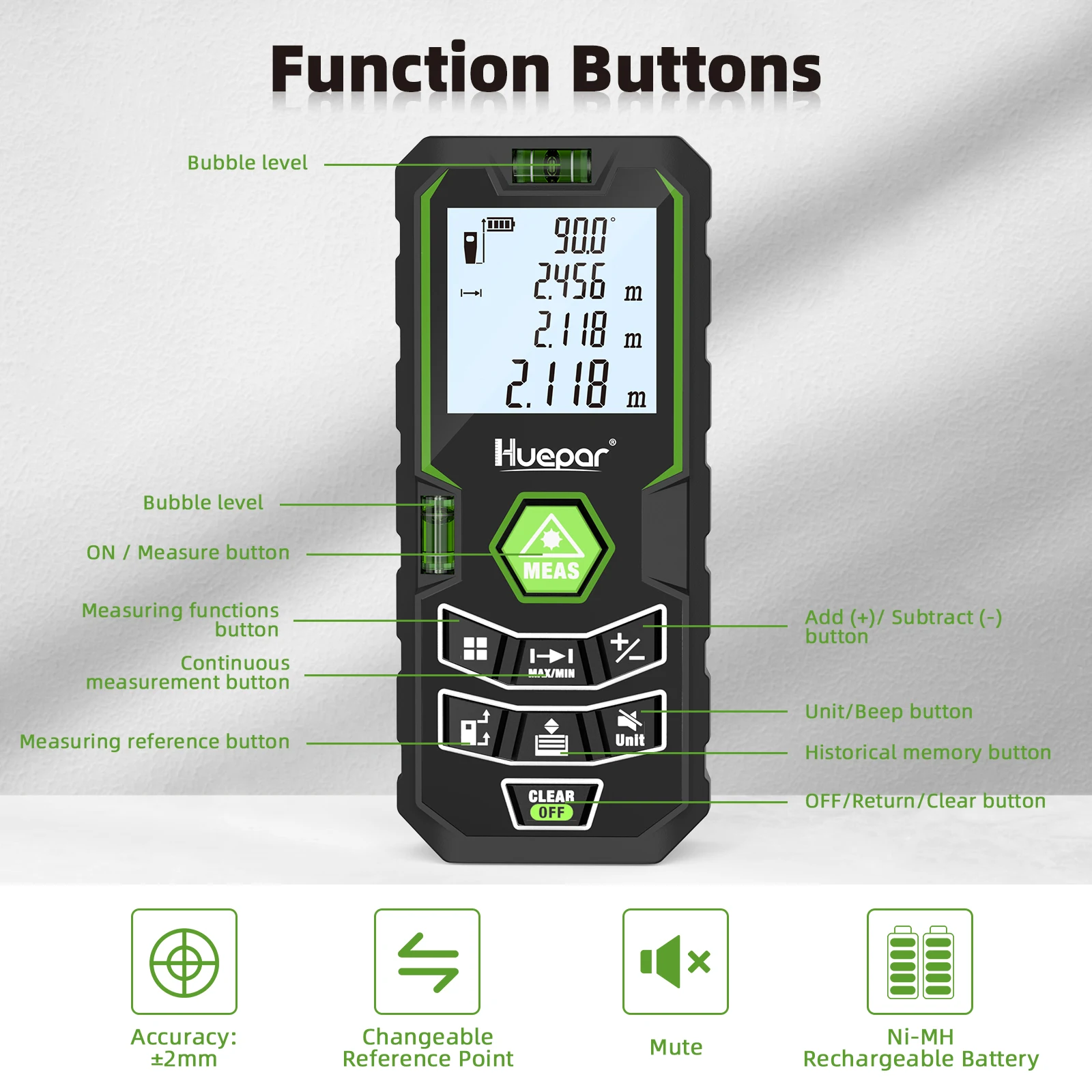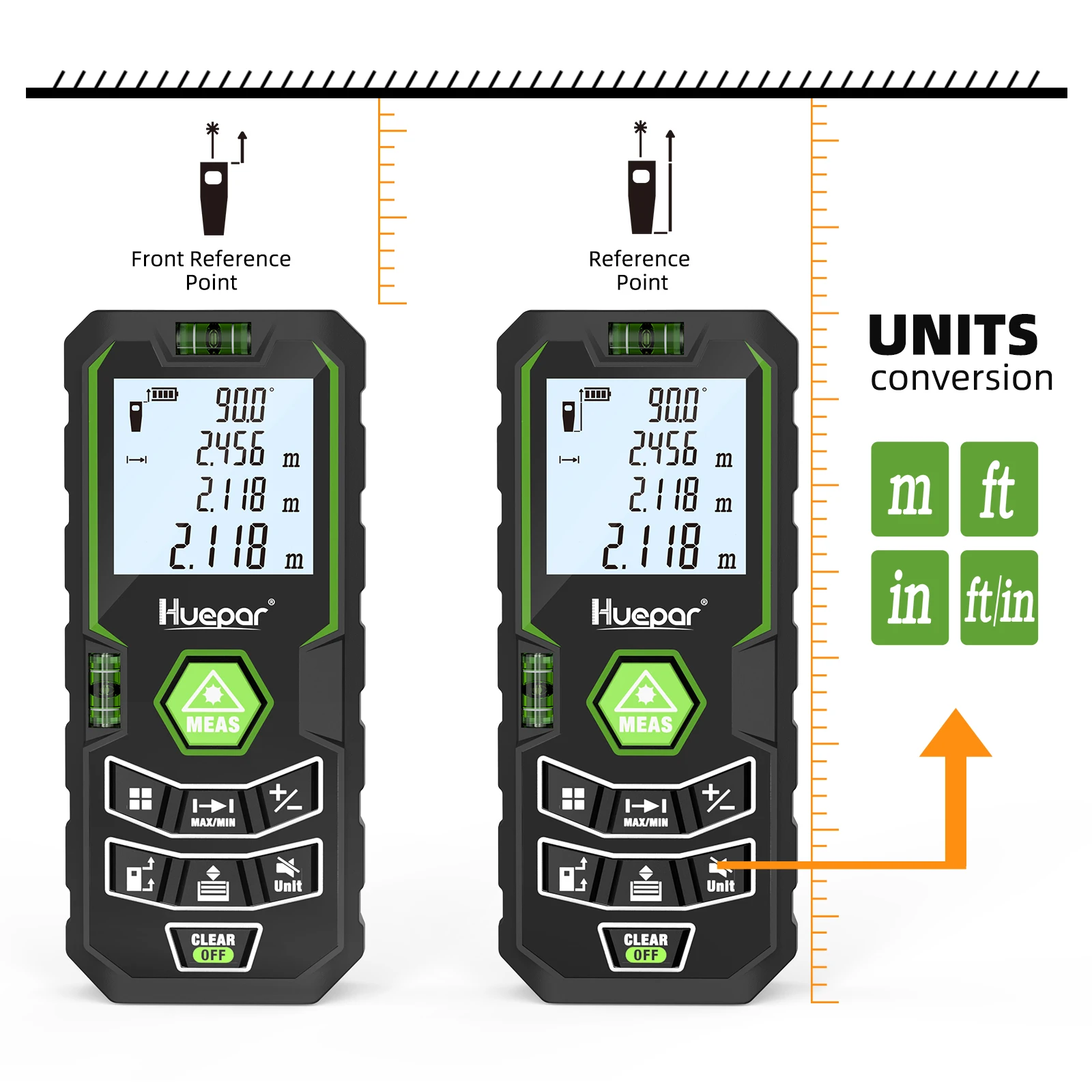 Huepar X6 Laser Distance Meter Rangefinder 330Ft/100M(165Ft/ 50M 390Ft/120M)With Multi-Measurement Modes M/in/Ft & Angle Sensor
