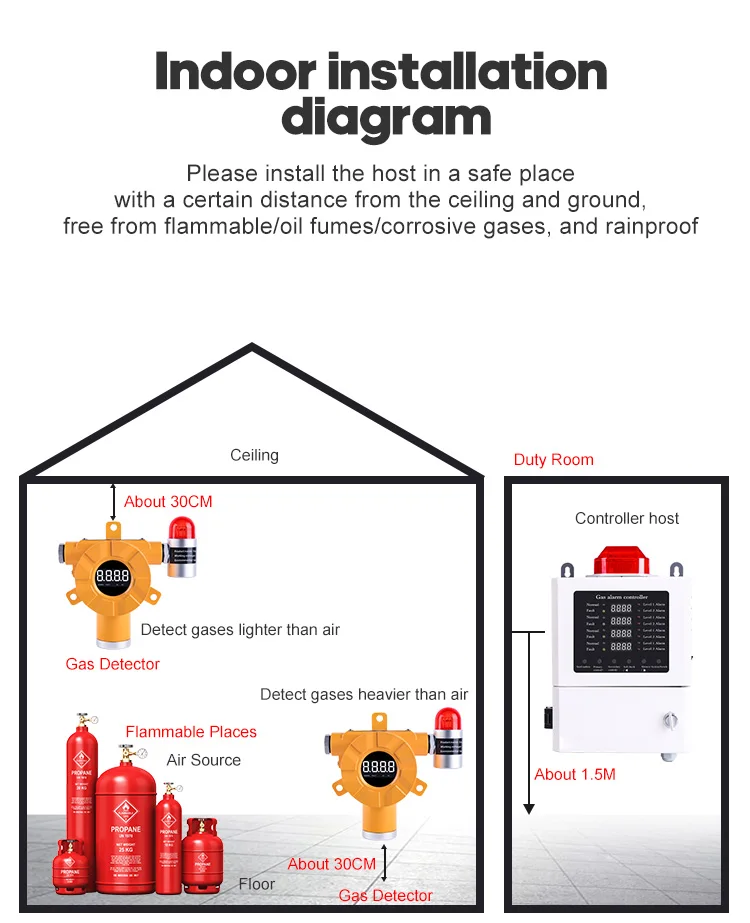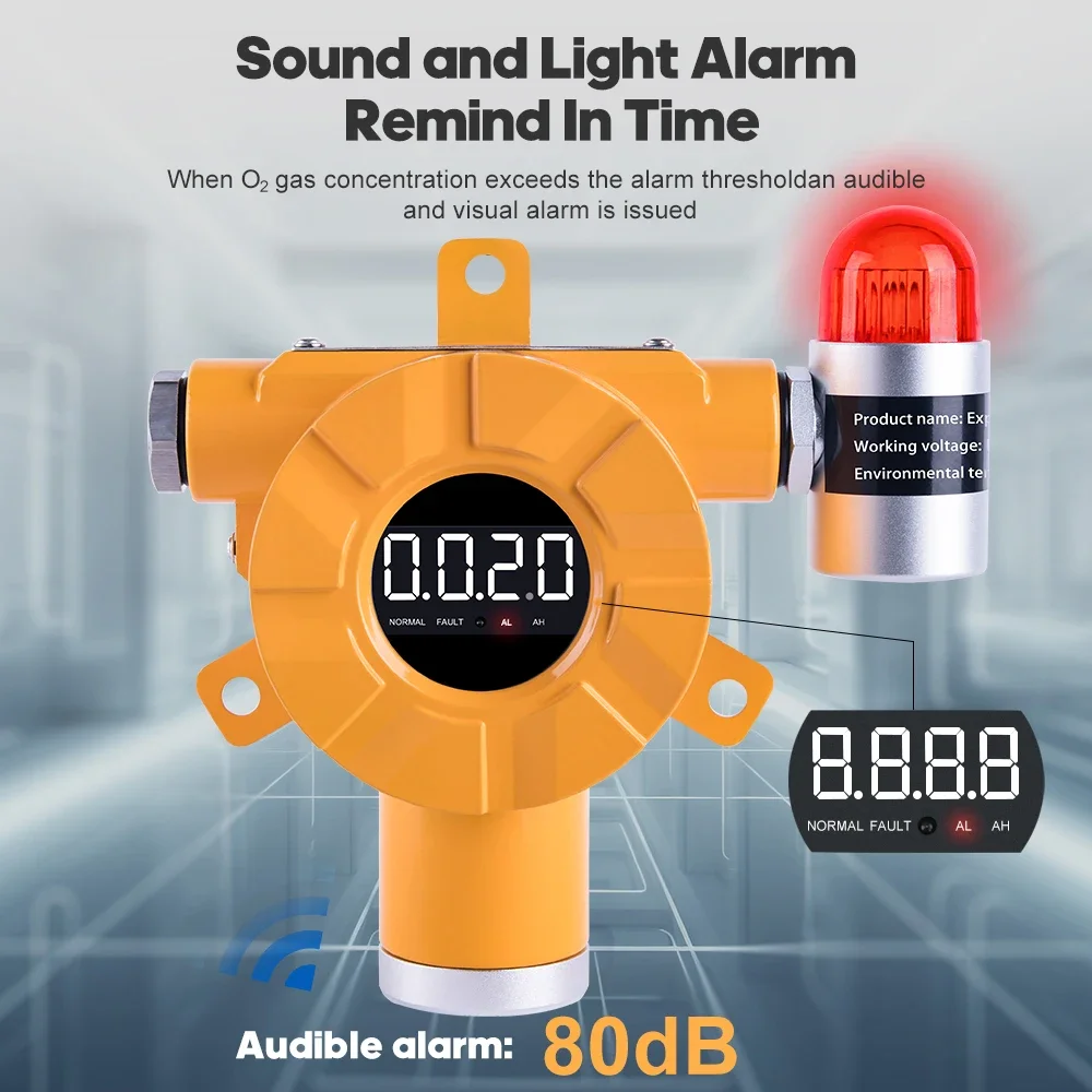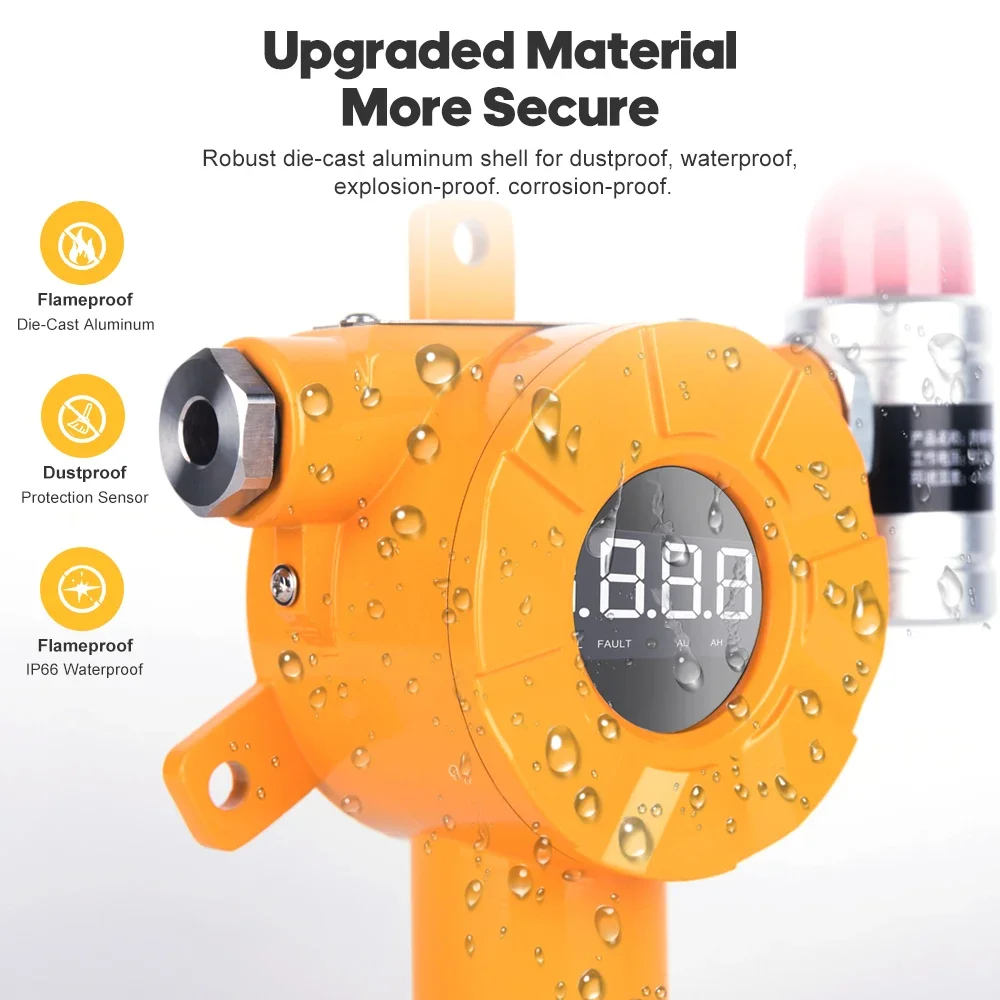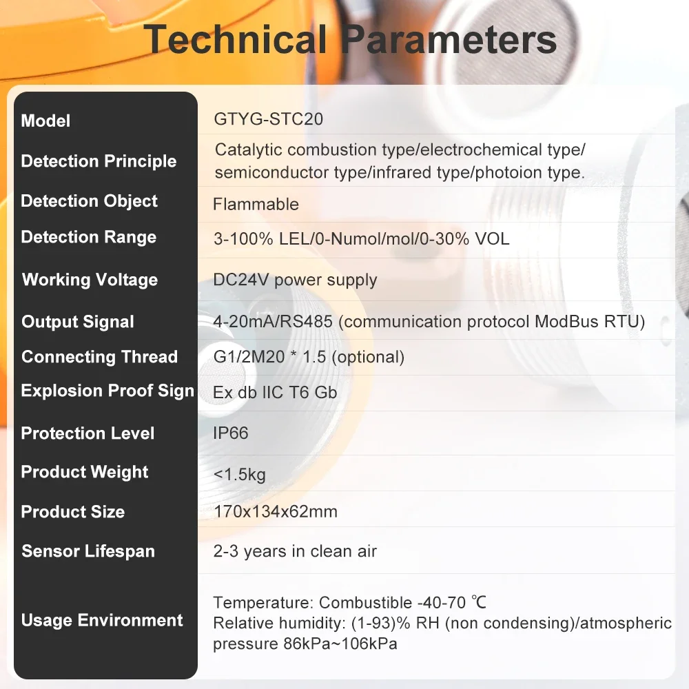 This is a fixed gas leak detector , it can detect Flammable and Explosive gas .The detect range is 0~5~10~100%vol ,the low alarm value is 2 , the high alarm value is 2.5%vol . The explosion-proof grade is Exd II CT6 , the protection type is IP66.
