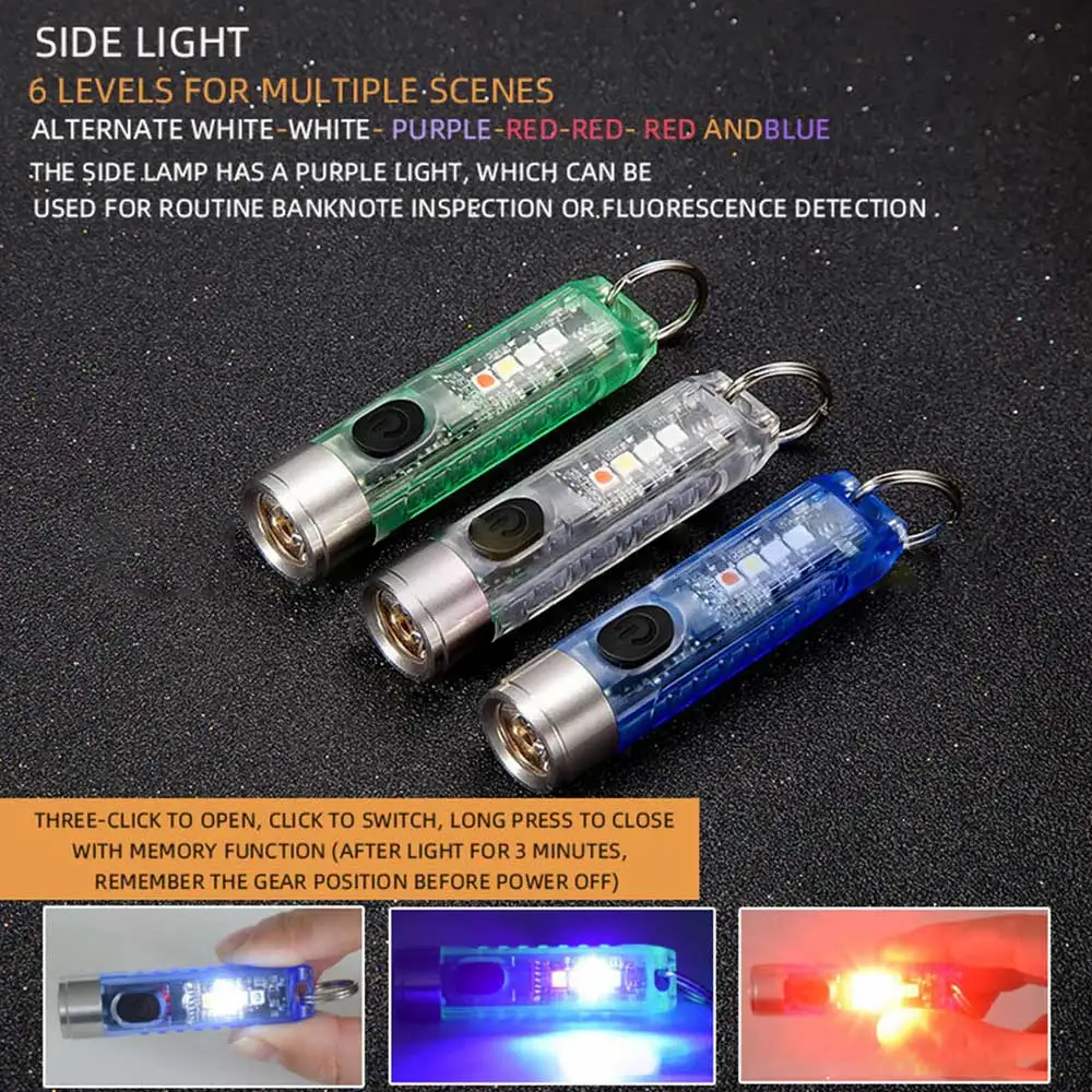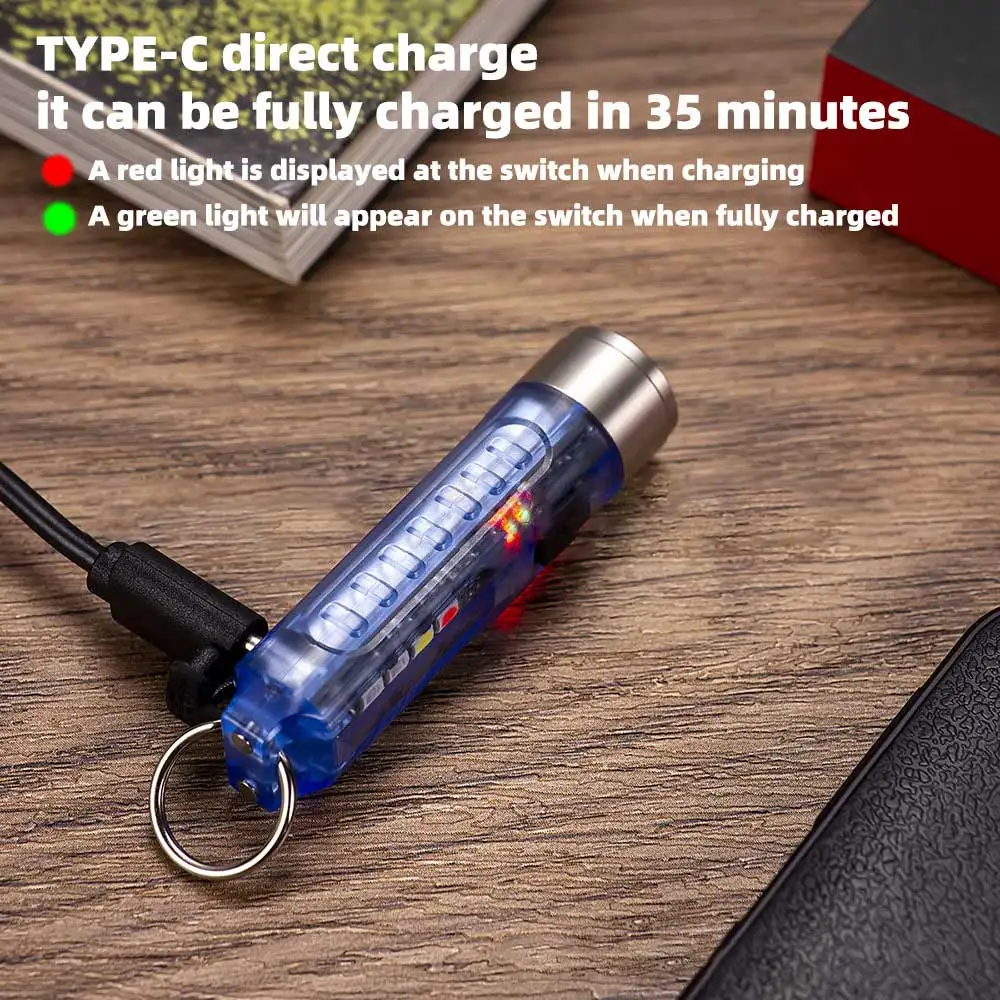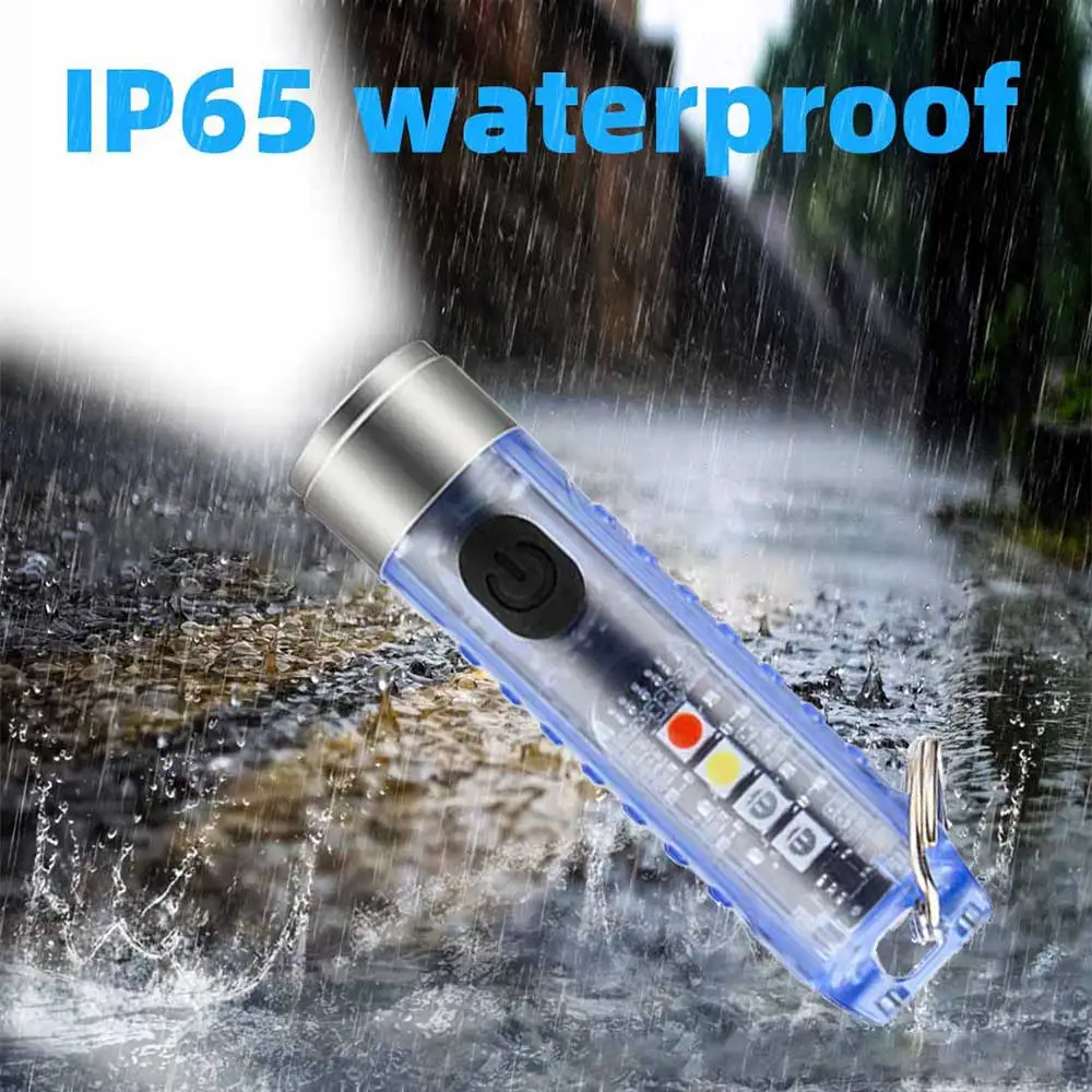 IP65 Waterproof Flashlight Type-C Charging Big Power Emergency Torch Light With Metal Keychain