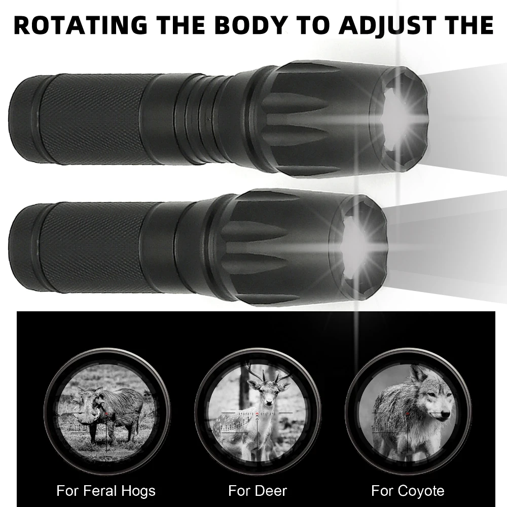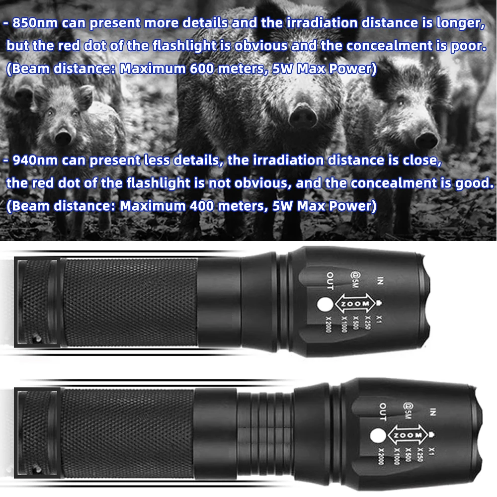 ADJUSTABLE FOCUS: The IR flashlight is zoomable, that you can adjust your light for close flooding rang to ultra- powerful precise beam.
