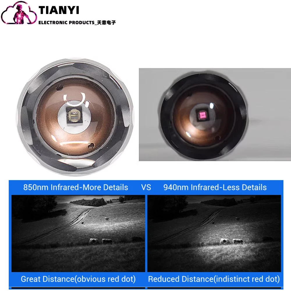 Infrared night vision instrument fill light flashlight variable focal length 850nm 940nm infrared night vision flashlight night vision lamp
