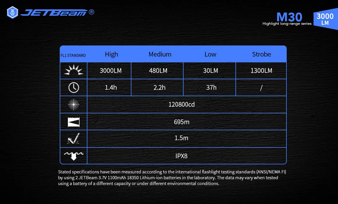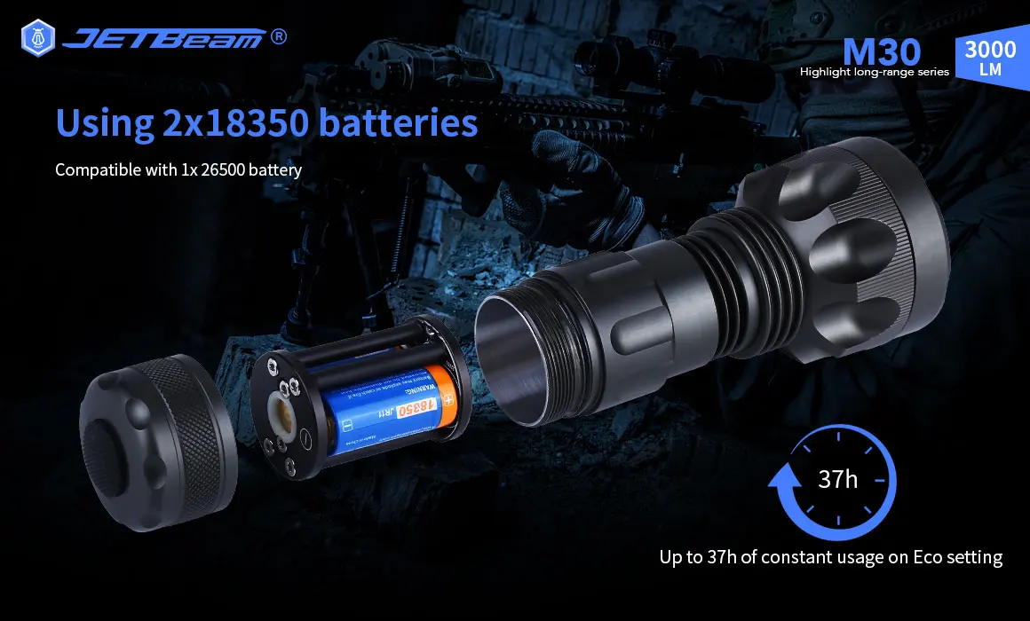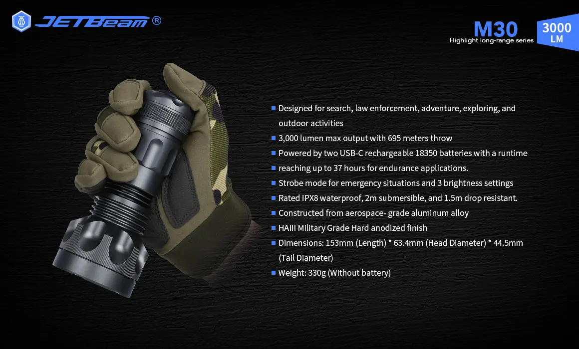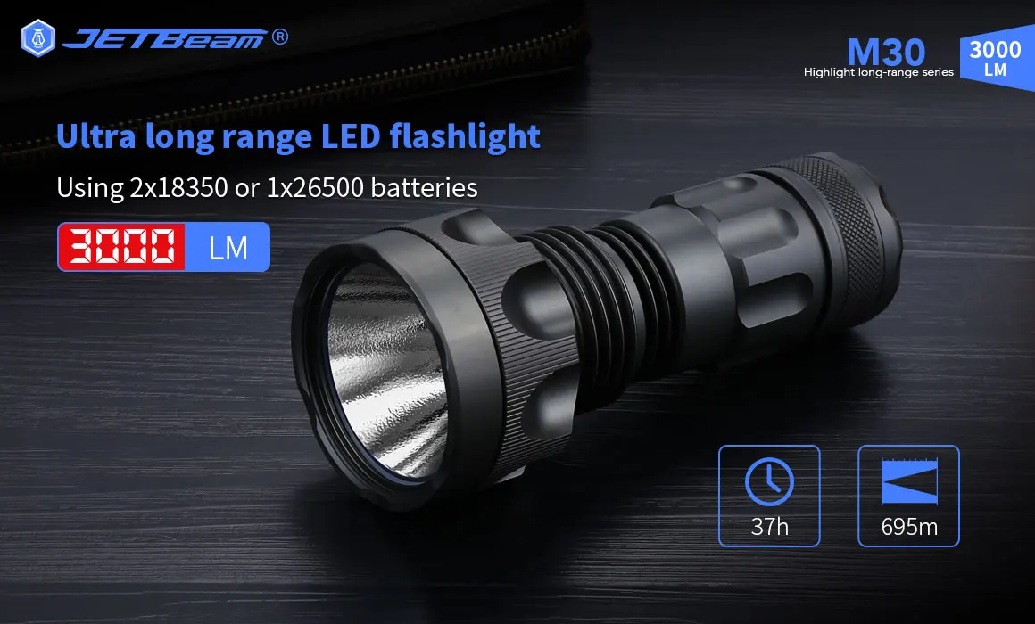 Jetbeam M30 High Power EDC Flashlight Luminus SST-70 3000 Lumens Torch Light With 2x 18350 Battery for Camping Self Defense