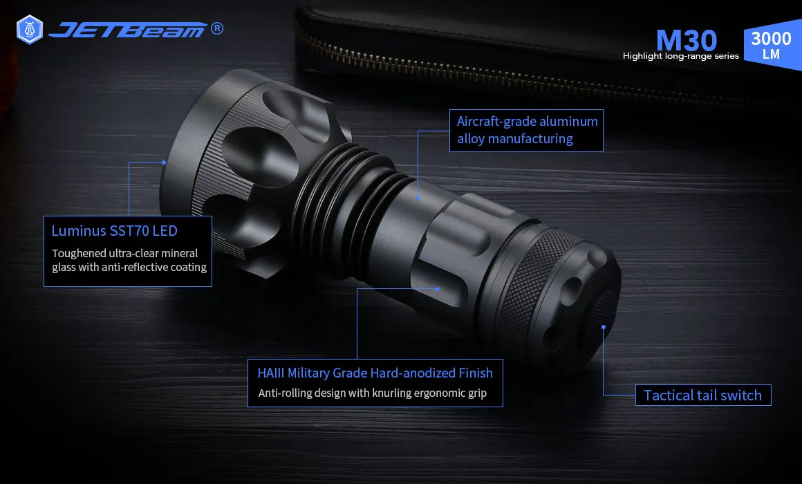 Be the first to review “Jetbeam M30 High Power EDC Flashlight Luminus SST-70 3000 Lumens Torch Light With 2x 18350 Battery for Camping Self Defense”